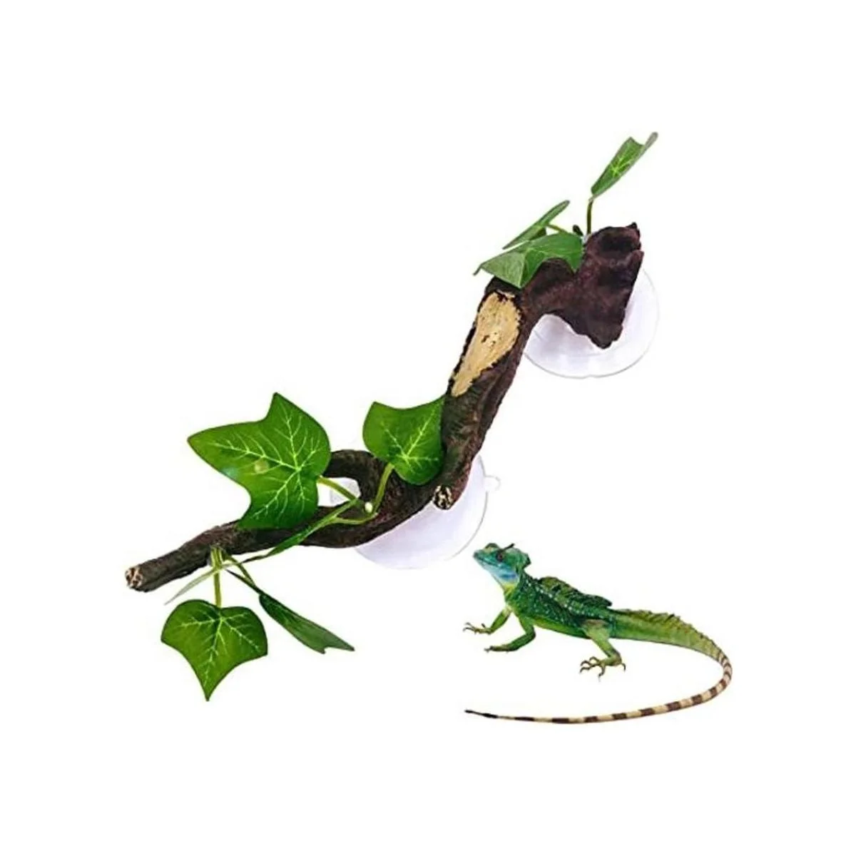 PINVNBY 2 piezas de decoración de plantas de terrario de esquina de madera con ventosa, adorno de resina para anfibios, lagarto, serpiente, escalada