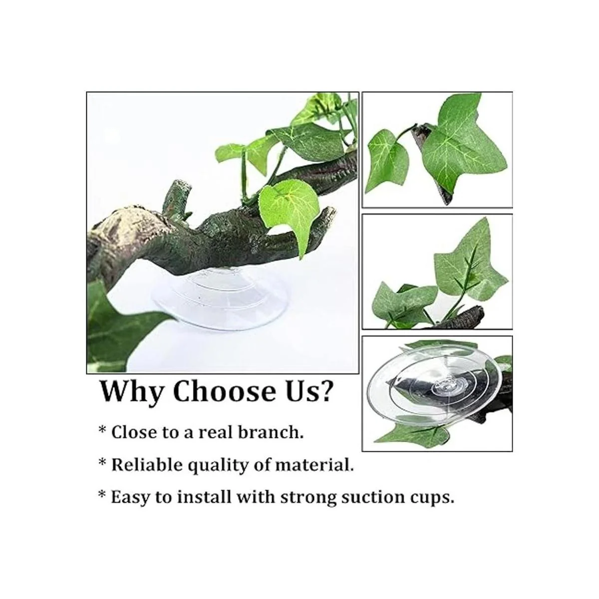 Apariencia aural: la planta del paisaje del terrario se acerca a una rama de madera real. Decorado con hojas verdes, esta decoración de plantas vívidas se ve hermosa y realista. Ponlo en el hábitat de reptiles o acuario, deja que las mascotas tengan una sensación de estar en un entorno natural, convierte tu terrario en un hermoso paisaje.