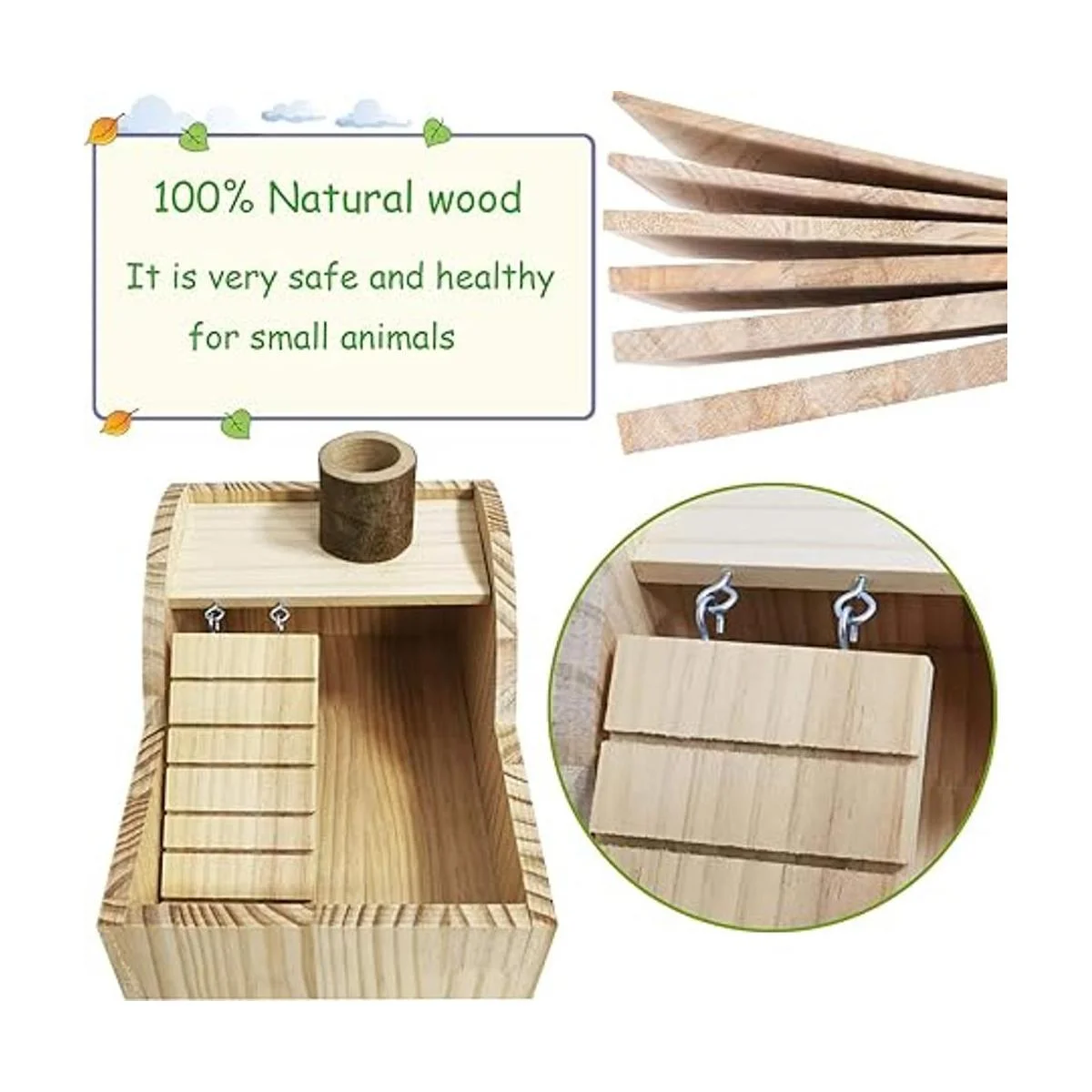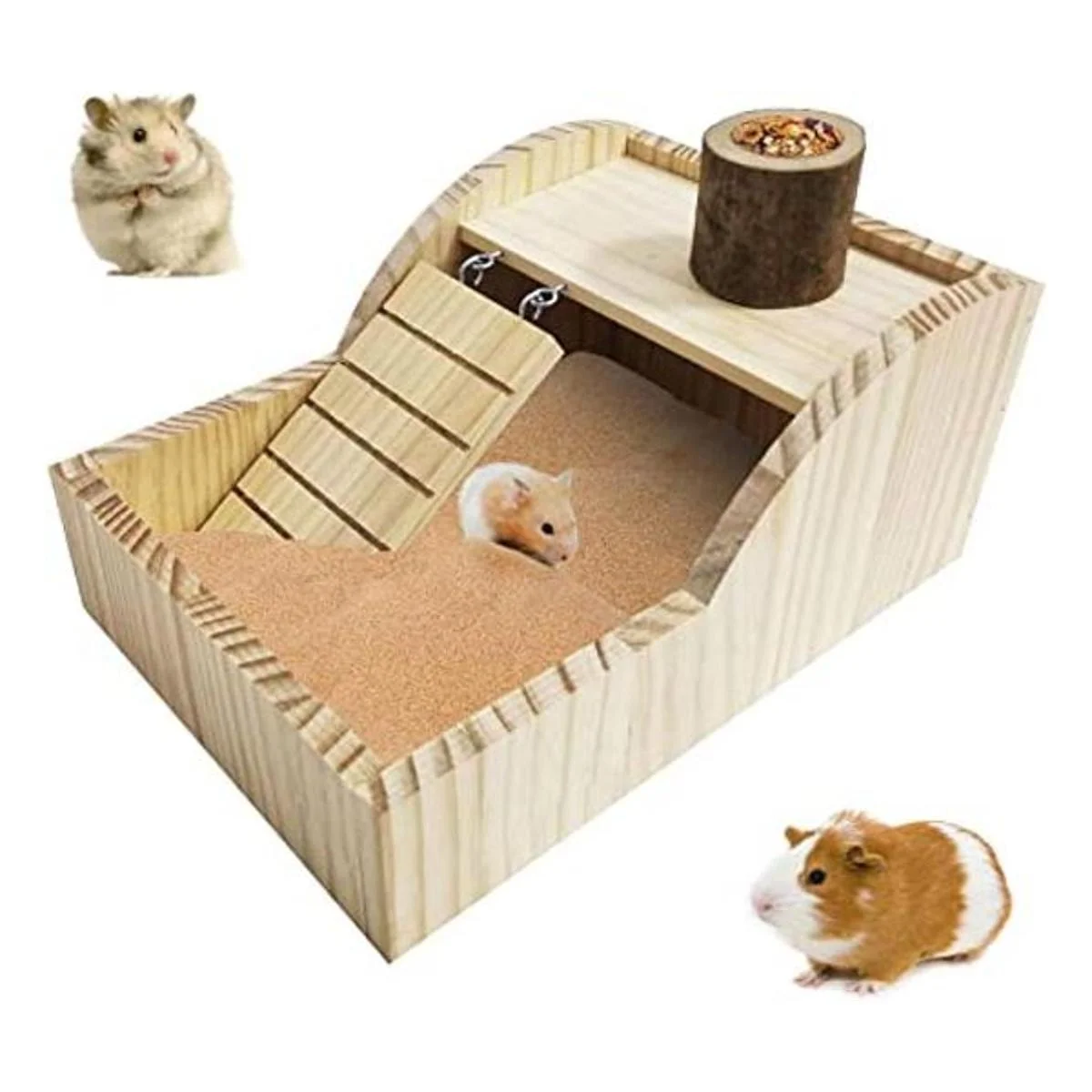 PINVNBY Caja de baño de arena para hámster de madera para ducha, chinchilla, con escalera de escalada, cuenco para enanos, ratones sirios, ratones y otros animales pequeños