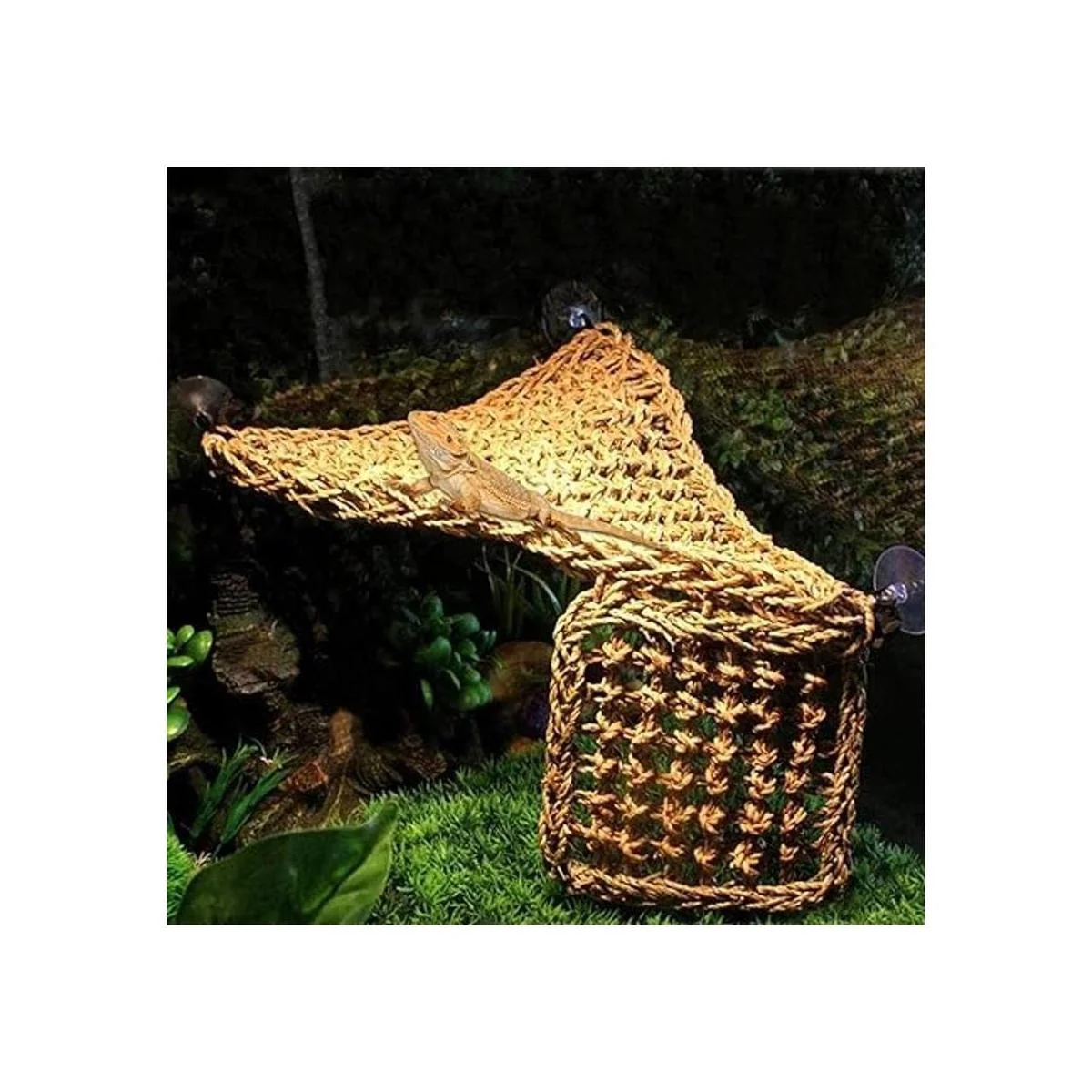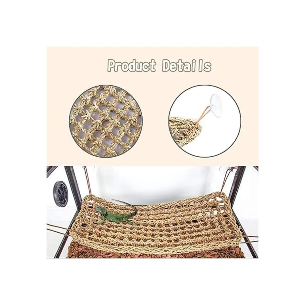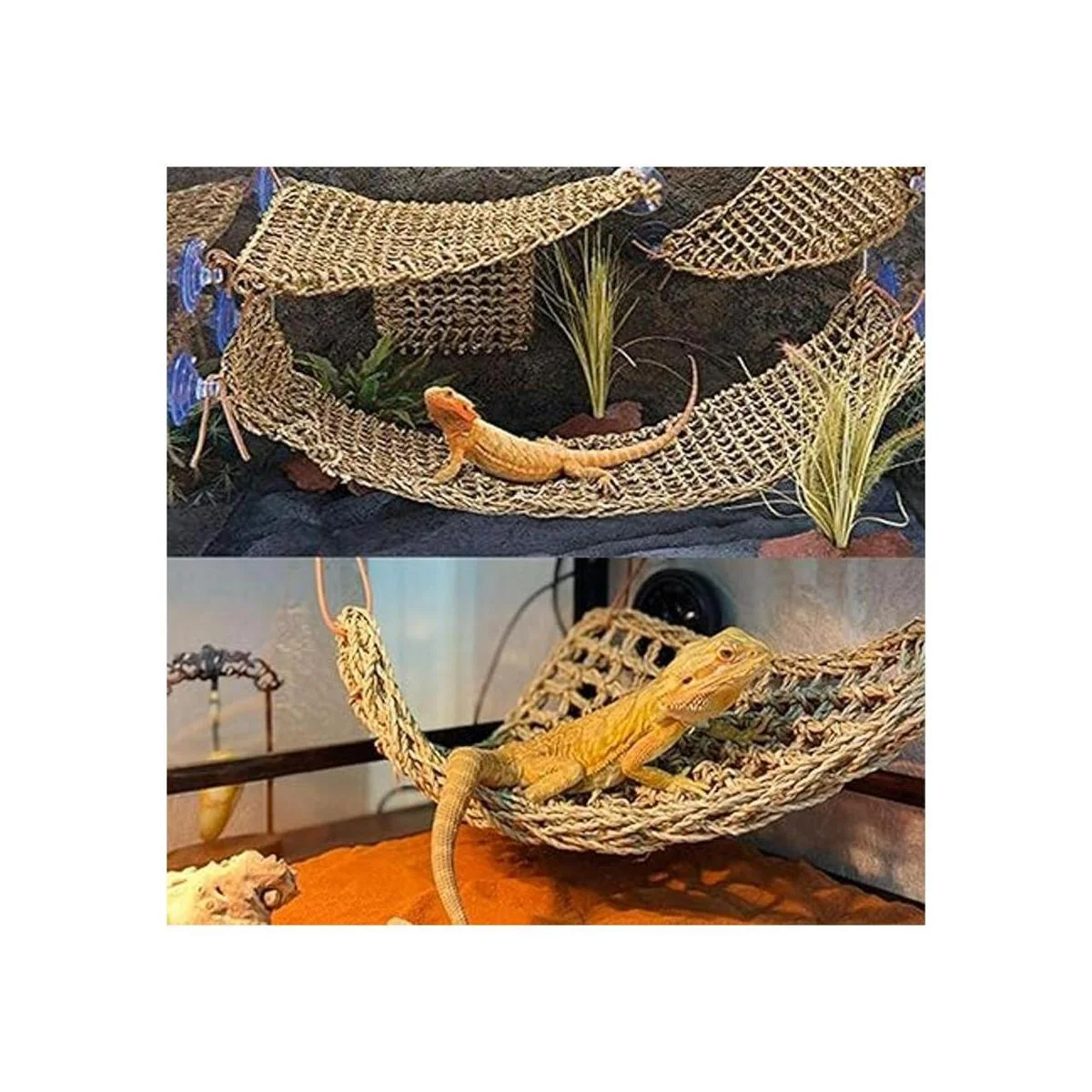Material de alta calidad: tres hamacas están hechas de material de fibra 100 natural de junco marino. Todas están tejidas a mano, suaves y muy duraderas. Una de las hamacas es más grande que otras hamacas. Dale a los reptiles un lugar para descansar y a las mascotas les encantará la cómoda y escalable tumbona.
