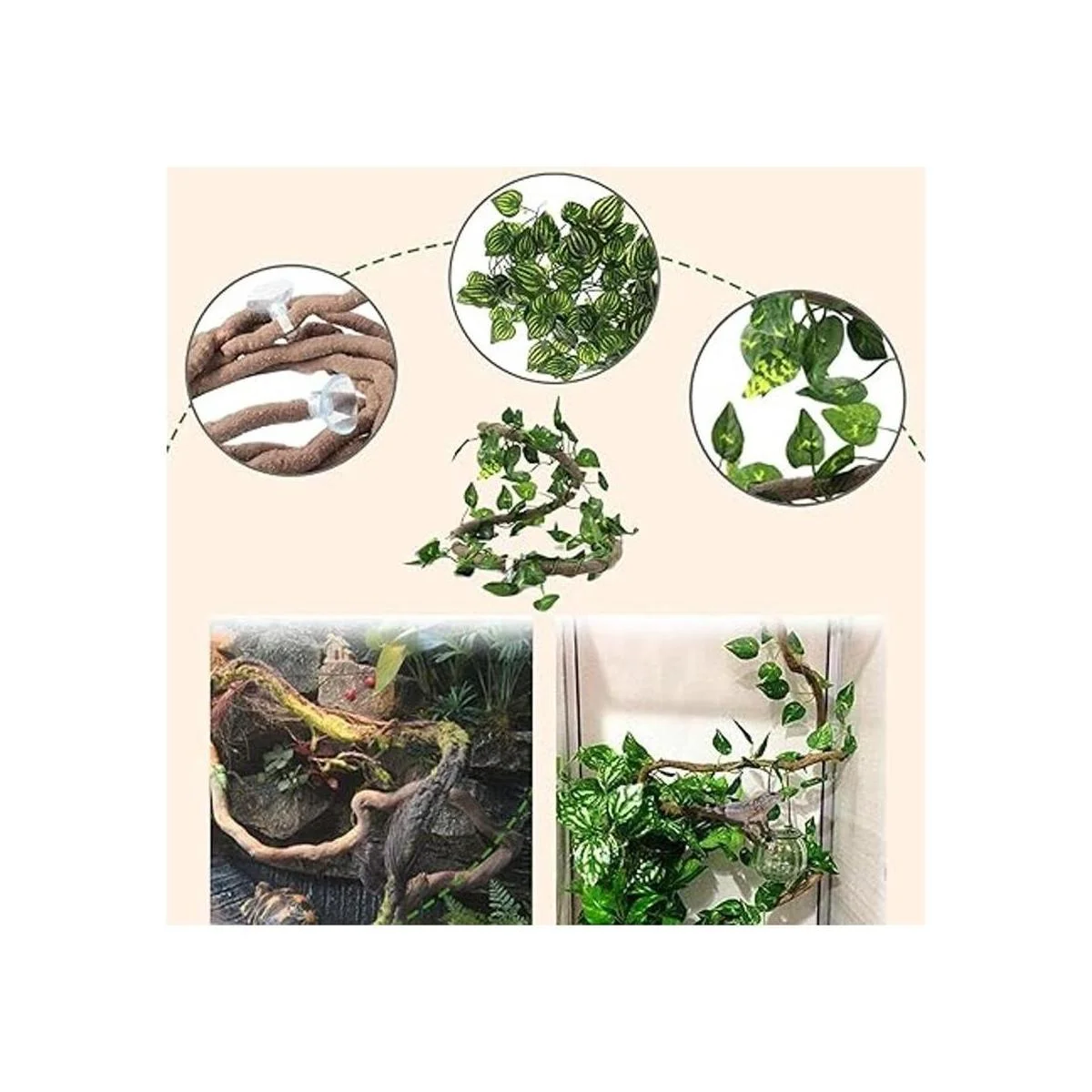 Vid de reptil flexible: la enredadera de decoración flexible para reptiles tiene una superficie rugosa y es fácil para que los reptiles suban, viene con ventosas, fácil de ajustar y fijar al tanque. Las hojas artificiales están laminadas de polipropileno, no se decoloran ni destiñen fácilmente. La enredadera de uva flexible y las hojas de reptil tienen un aspecto realista, se pueden mezclar bien con otras plantas en el tanque, ayudan a crear una entorno natural para tu mascota. .