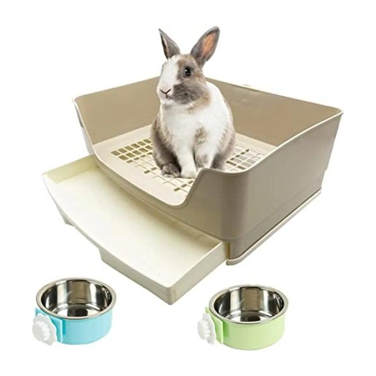 PINVNBY Rabbit Corner Litter Box with Drawer Small Animal Litter Pan Bunny Potty Trainer Pet Toilet for Rabbit Bunny Guinea Pigs Chinchilla Ferret