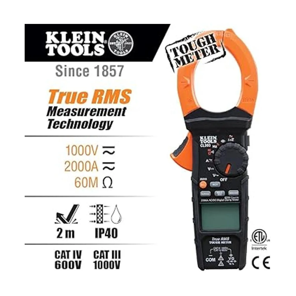 Rugged Klein TOUGH METER industrial design stands up to jobsite demands; built to withstand a 6.6Foot 2m drop