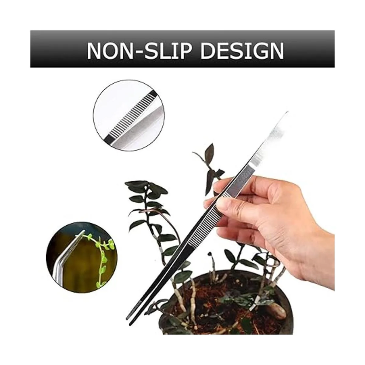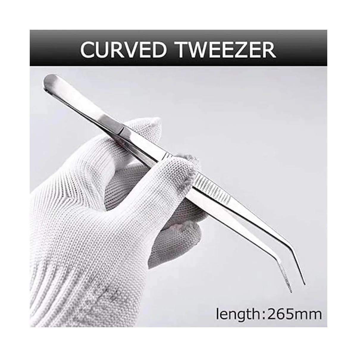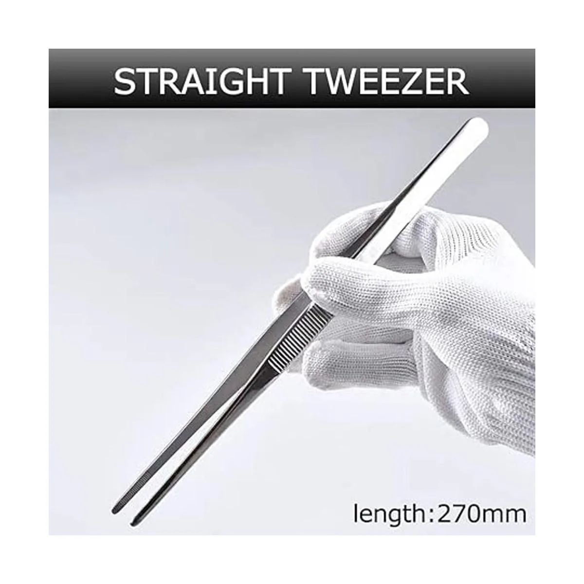 Ventaja: las pinzas rectas y curvadas tienen puntas dentadas para evitar que la comida se caiga. Son lo suficientemente largos como para evitar que los dedos se muerdan.