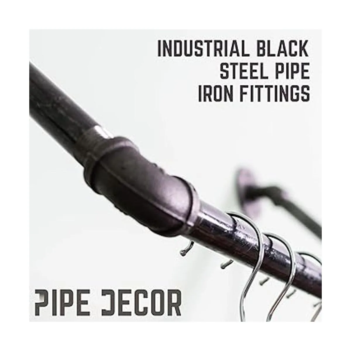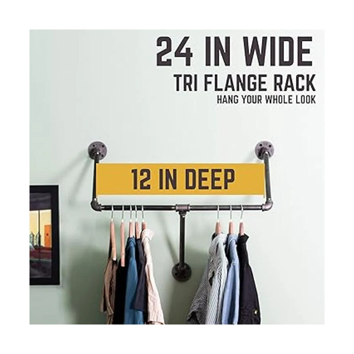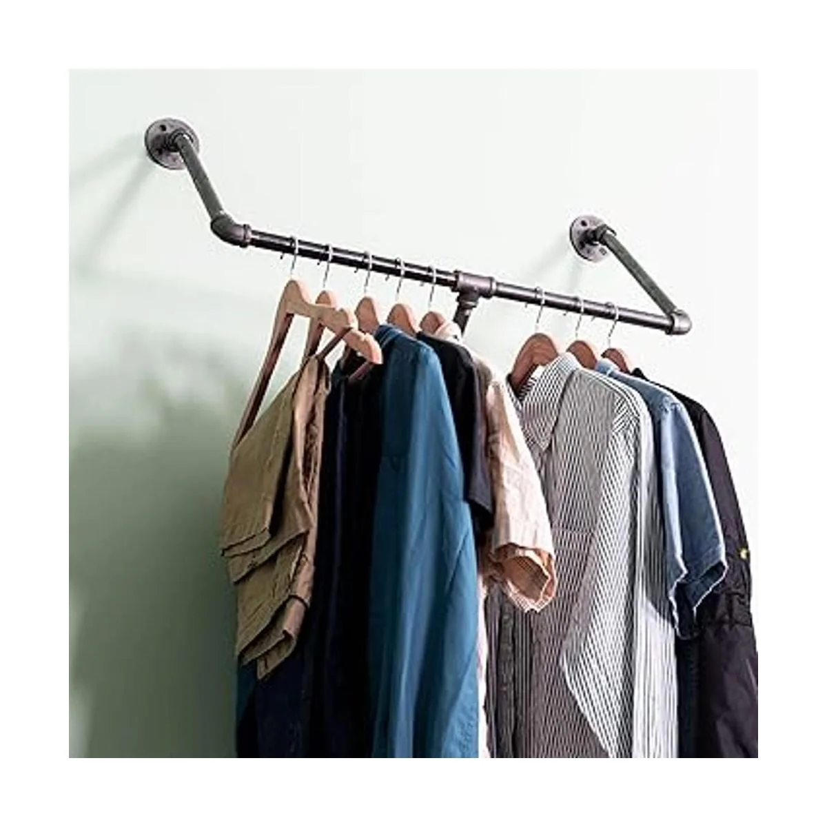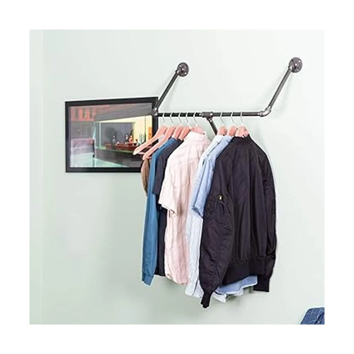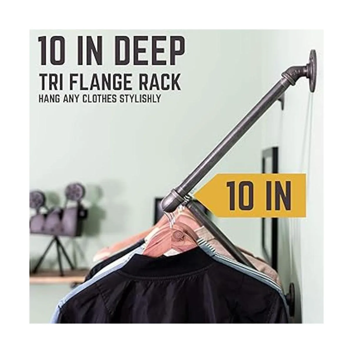 PIPE DECOR Perchero de ropa de pared de tubería industrial, exhibición de ropa de armario comercial o residencial, marco de soporte de ropa de metal gris y negro, estilo de tres bridas
