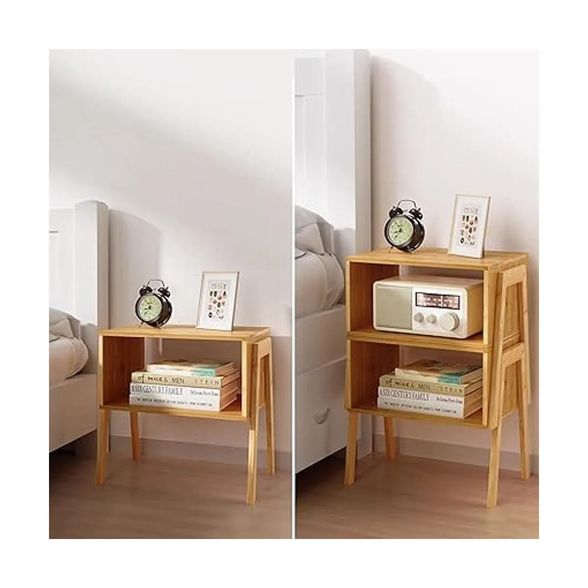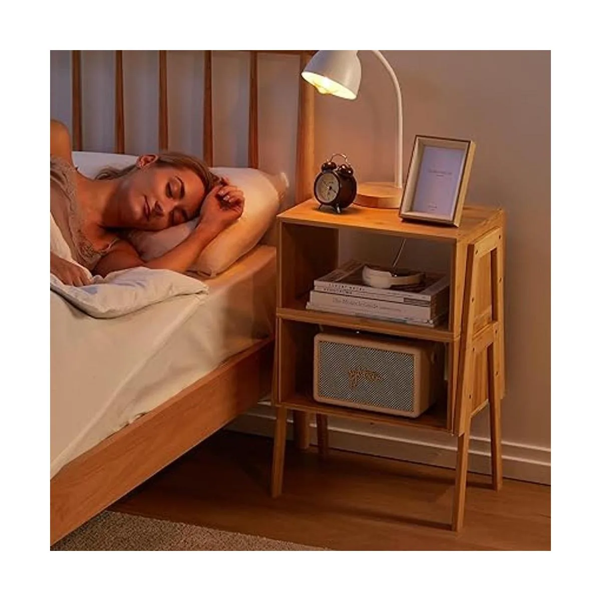 Pipishell ;esas de noche apilables de bambú, mesitas de noche para dormitorio, cuarto de guardería, lavandería, sala de estudio, espacios pequeños de almacenamiento de Pipishell, juego de 2