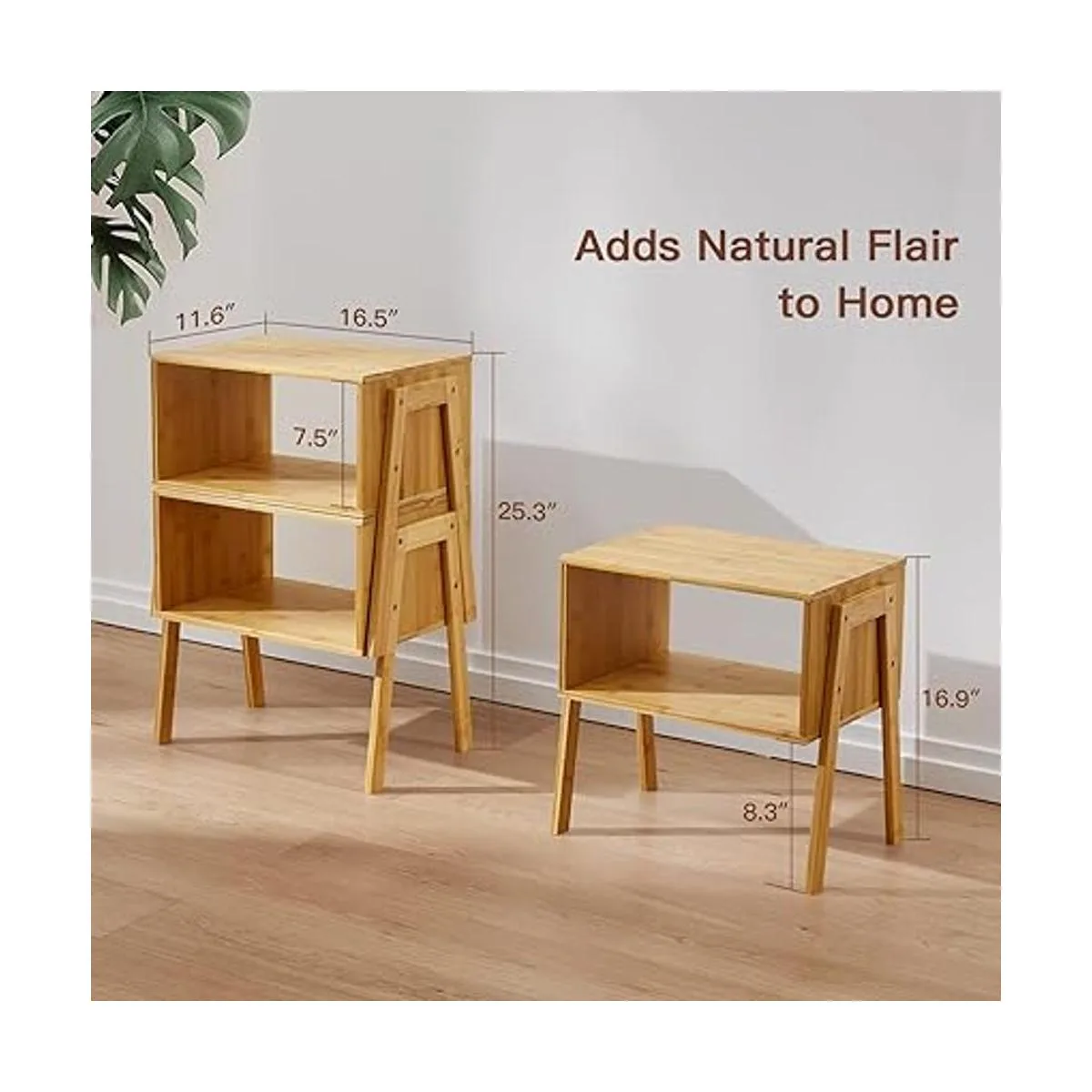 Colocación apilable o disposición separada: Diseñado con estructura trapezoidal, las mesas auxiliares de bambú Pipishell te permiten apilarlas o ubicarlas de forma simétrica individual. Puedes mover o apilar mesas laterales fácilmente a voluntad.