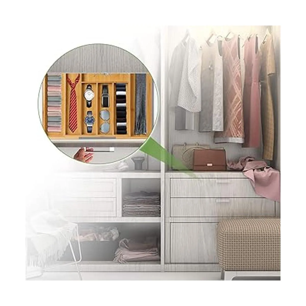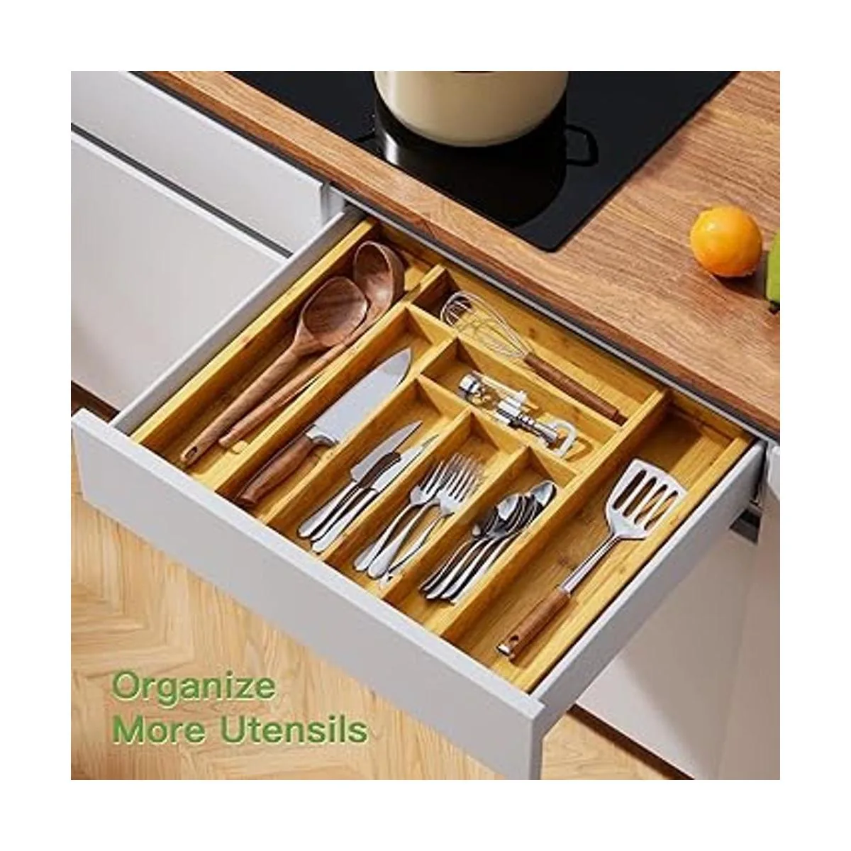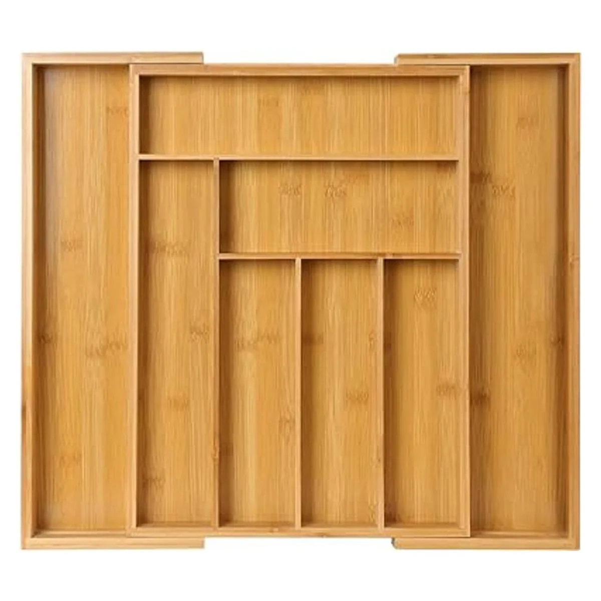 Pipishell Organizador de cajones expandible de bambú para utensilios, bandeja de cubiertos ajustable, organizador de separadores de cajones de madera para cubiertos, cubiertos, cuchillos en cocina, dormitorio, sala de estar