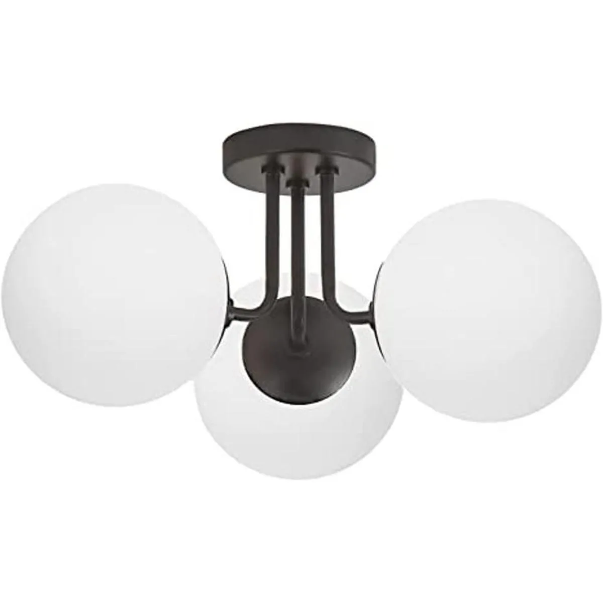 Colección de montaje semiempotrado y estilo moderno: refresca la decoración de tu hogar con un soporte semiempotrado de la colección Inspirre. Esta lámpara de techo está hecha de pantalla de vidrio esmerilado y acabado clásico de metal negro suave, se adapta perfectamente a cualquier estilo, desde moderno a rústico, aportando un toque moderno a su diseño retro vanguardista.