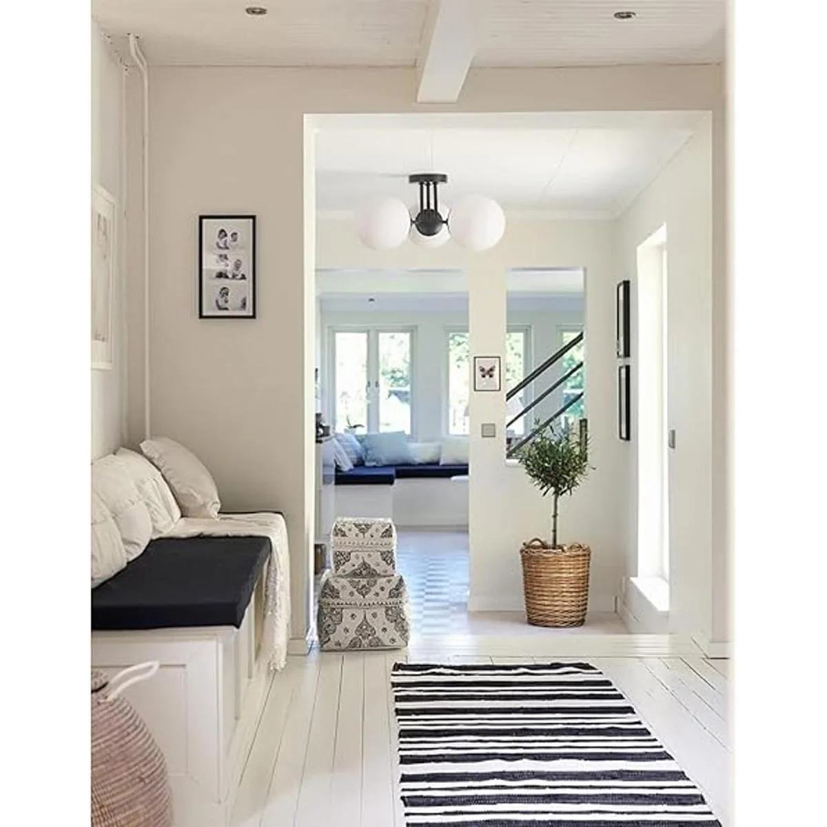 Pirxxiy Lámpara de techo semiempotrada de 3 luces color negro suave, pantalla de vidrio esmerilado vintage cerca del techo, modernas lámparas colgantes para interiores, para dormitorio, entrada, sala de estar.