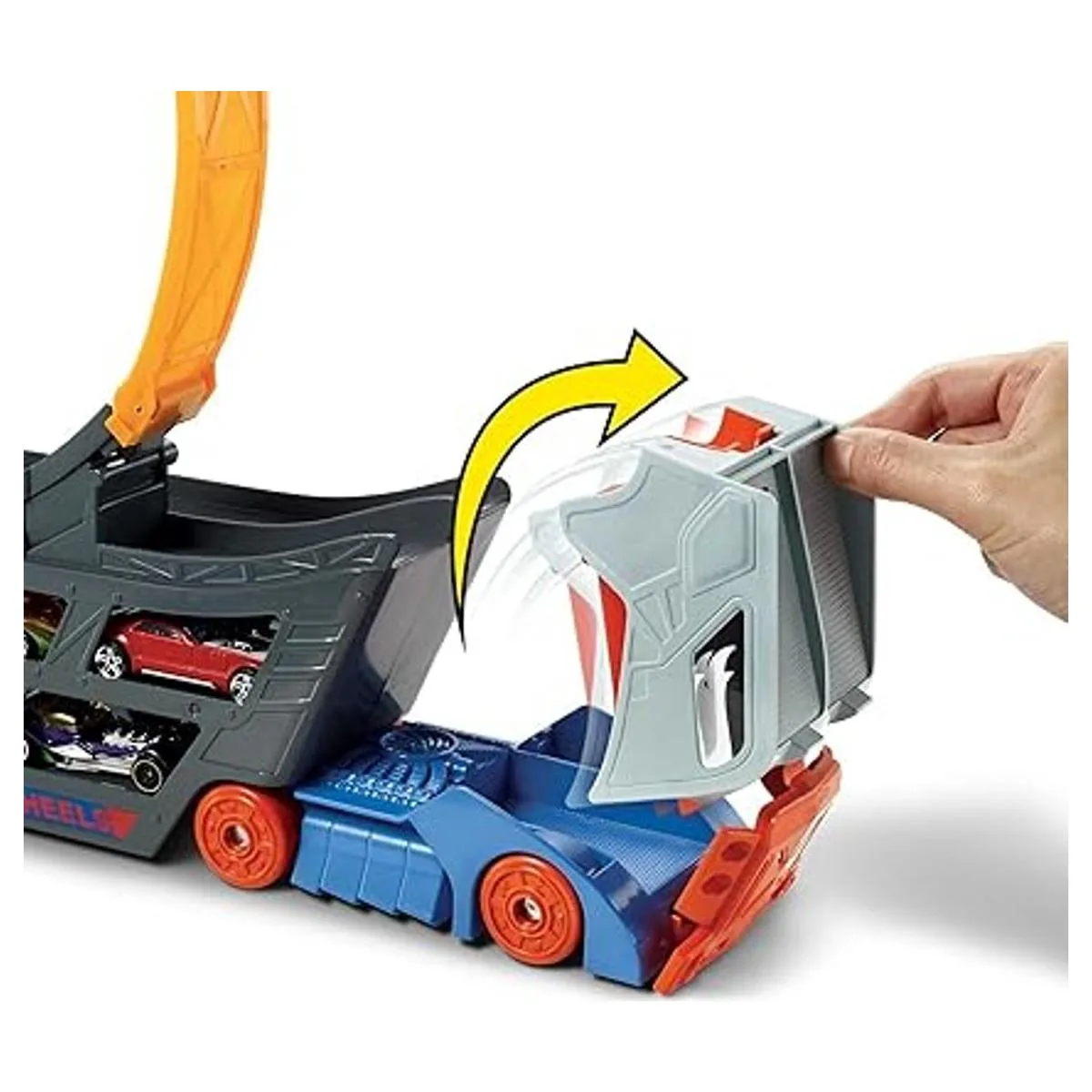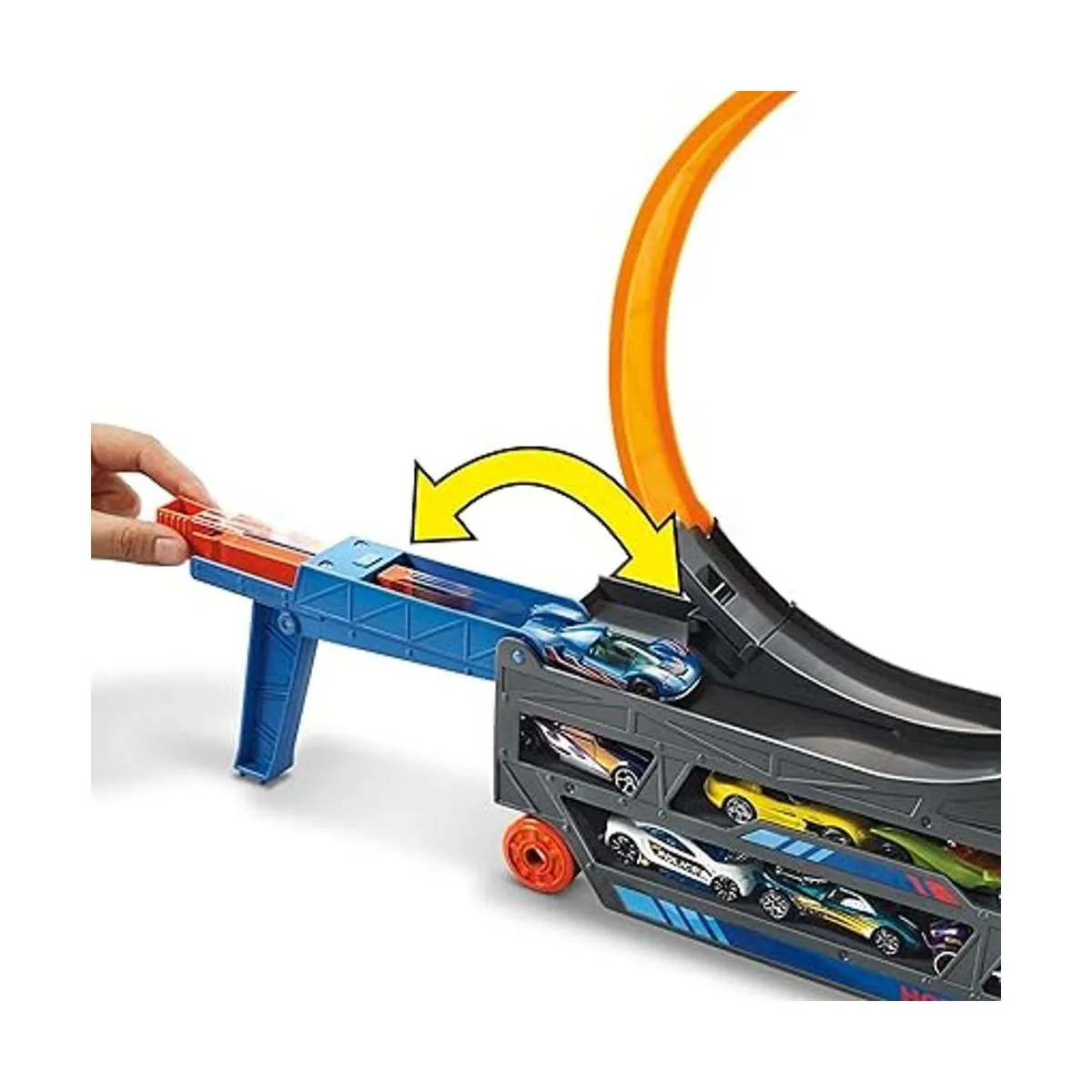 Este épico transportador tiene capacidad para hasta 18 coches, incluye un coche Hot Wheels y es un auténtico juego de bucle y juego, también