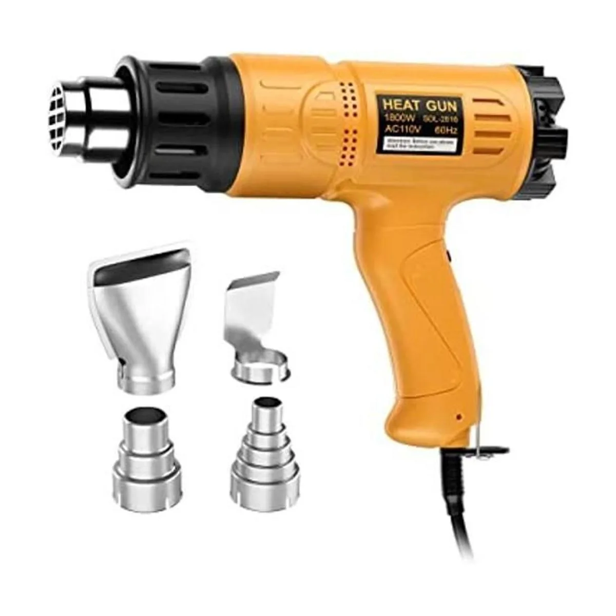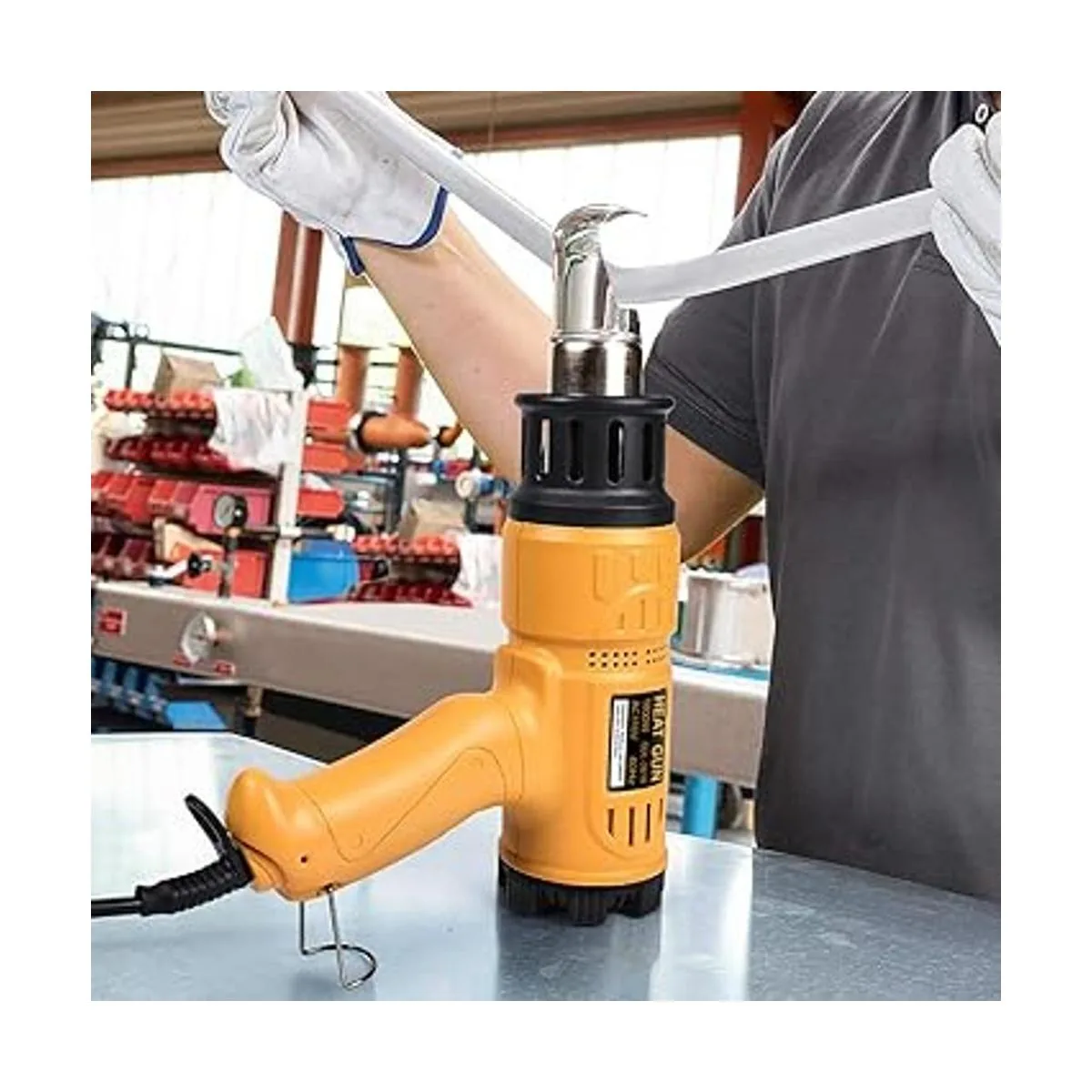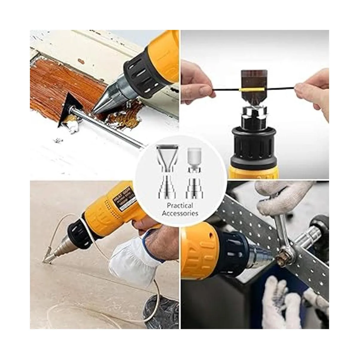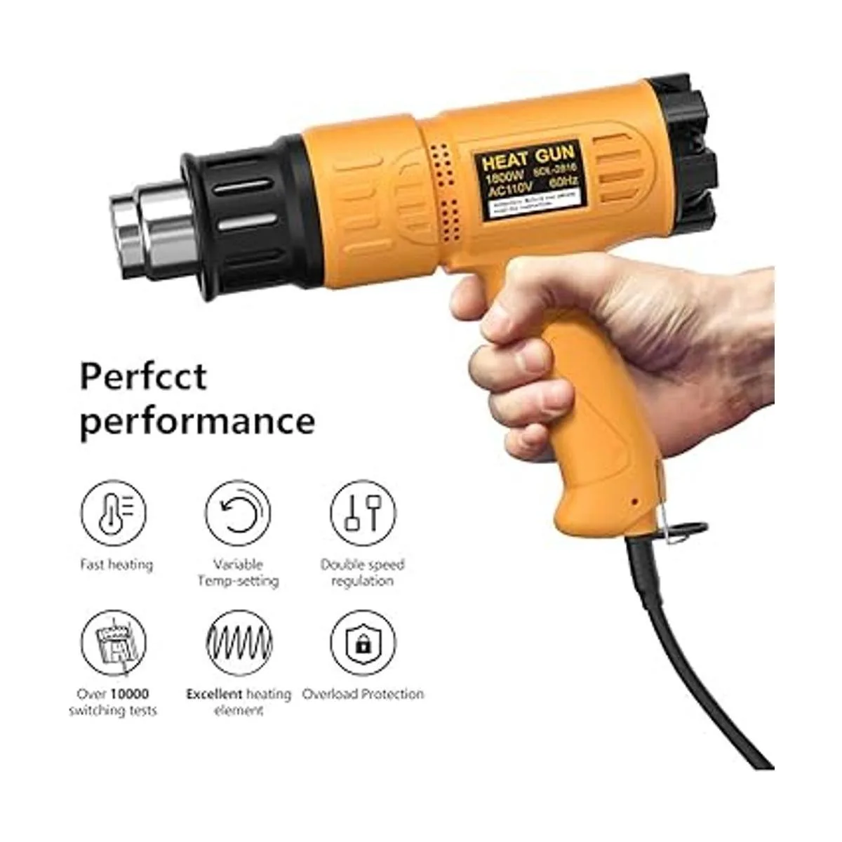 Protección contra sobrecalentamiento y amplia aplicación La de calor tiene protección automática de alta temperatura para proteger toda la máquina en entornos de temperaturas extremas y altas. Uso ideal para encoger tubos termorretráctiles, envoltura retráctil, calentar PVC, electrónica, reparaciones de teléfonos celulares, envoltura de vinilo, quitar pintura o azulejos de suelo, aflojar pernos oxidados y otros fines de calefacción o descongelación.