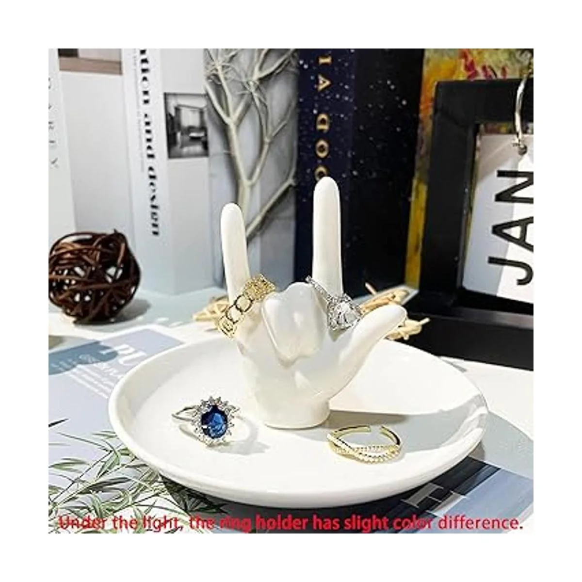 Piudee Soporte para anillos de mano, soporte para joyas de platos, soporte para anillo de mano, soporte de anillo de compromiso, boda, aniversario, boda, día de San Valentín, regalos para ella, marido, esposa, novia, regalo de novia