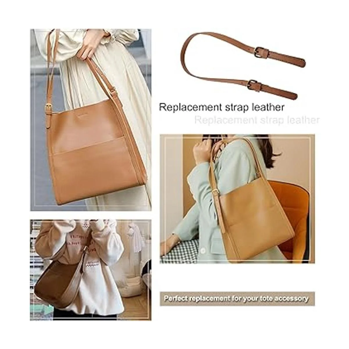 Piutouyar 2 asas de cuero sintético para bolso de 25.6 a 28 pulgadas, correa ajustable de cuero con doble hebilla de repuesto para correa de hombro de cuero, color marrón