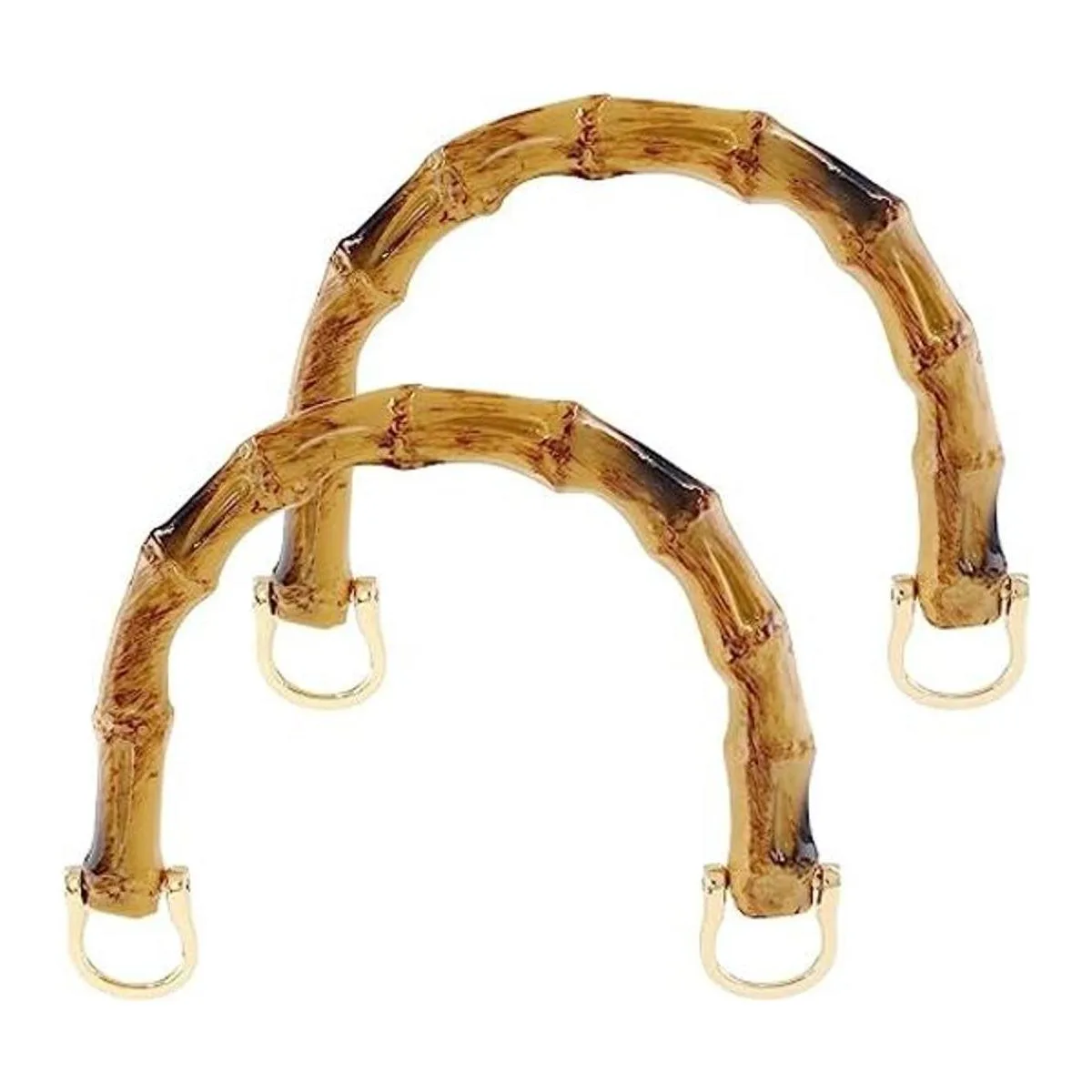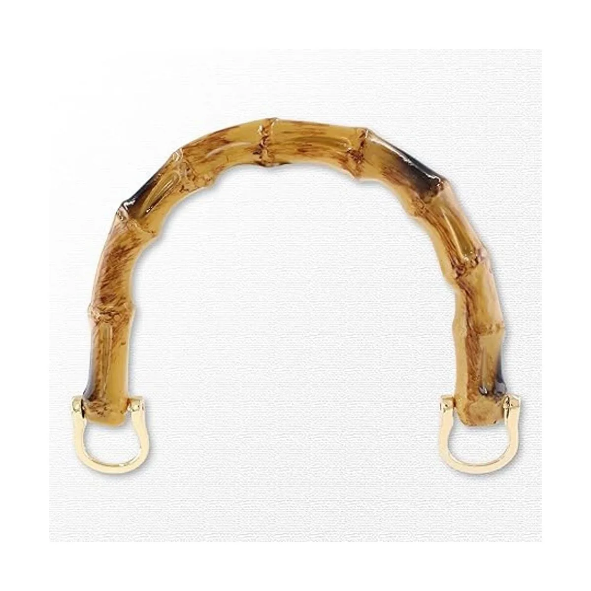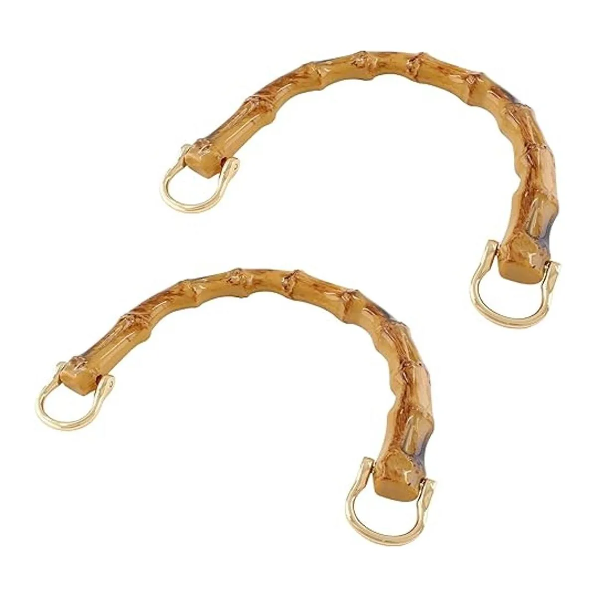 Piutouyar 2 asas de mano en forma de U, asas de bambú, asas de imitación de bambú, asas de repuesto de resina para hacer bolsas con hebilla de metal dorado, color marrón