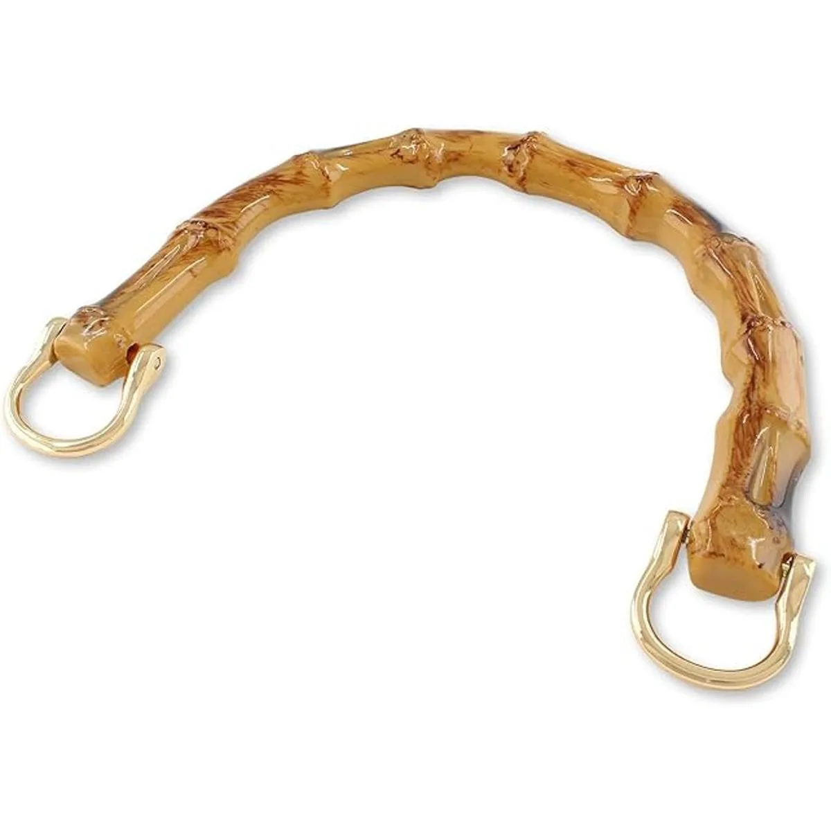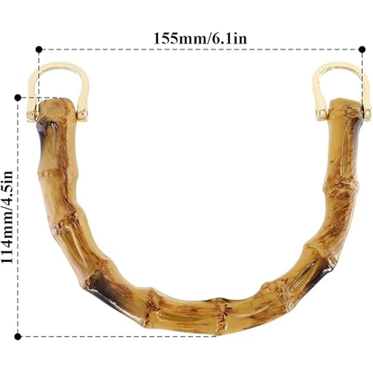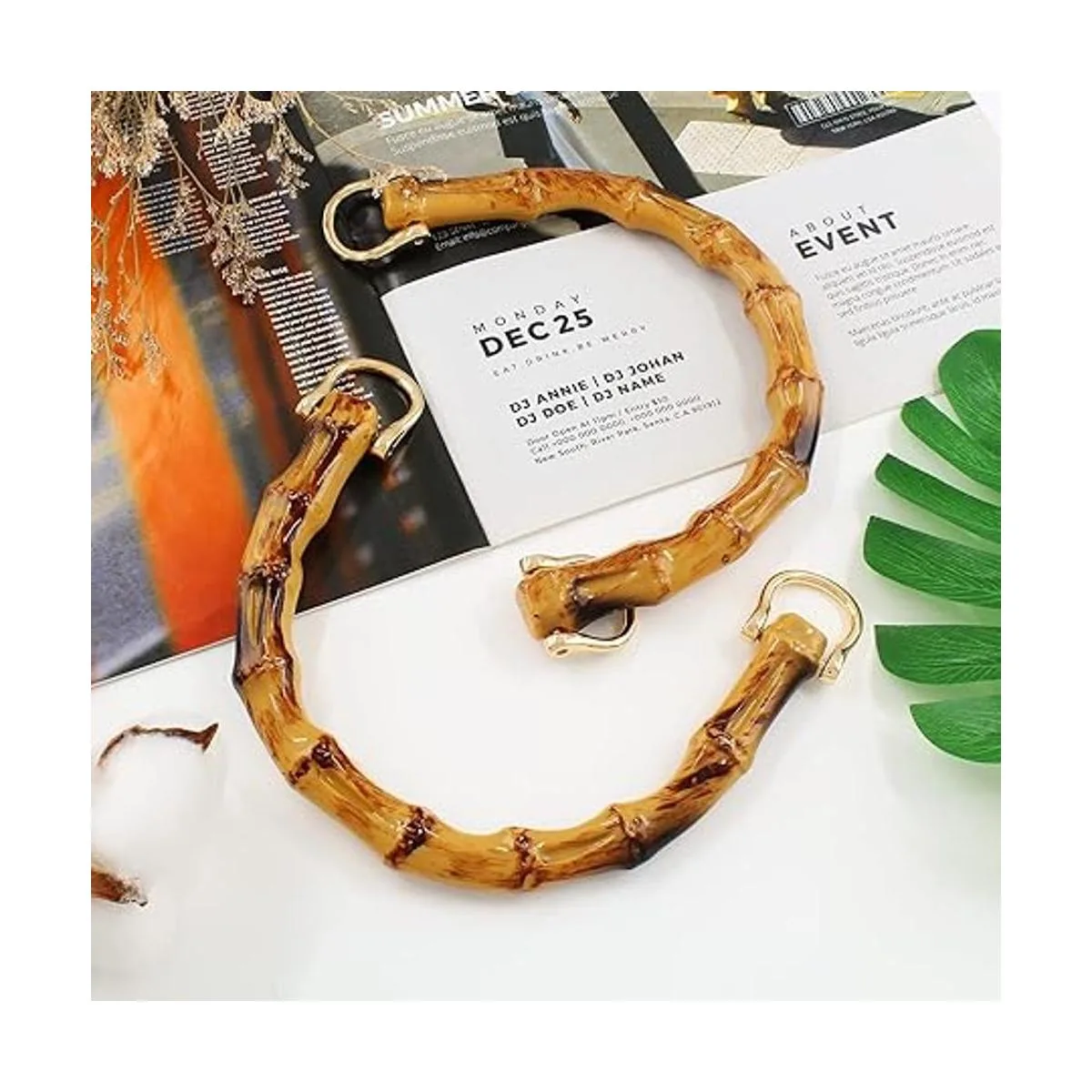 Piutouyar 2 asas de mano en forma de U, asas de bambú, asas de imitación de bambú, asas de repuesto de resina para hacer bolsas con hebilla de metal dorado, color marrón