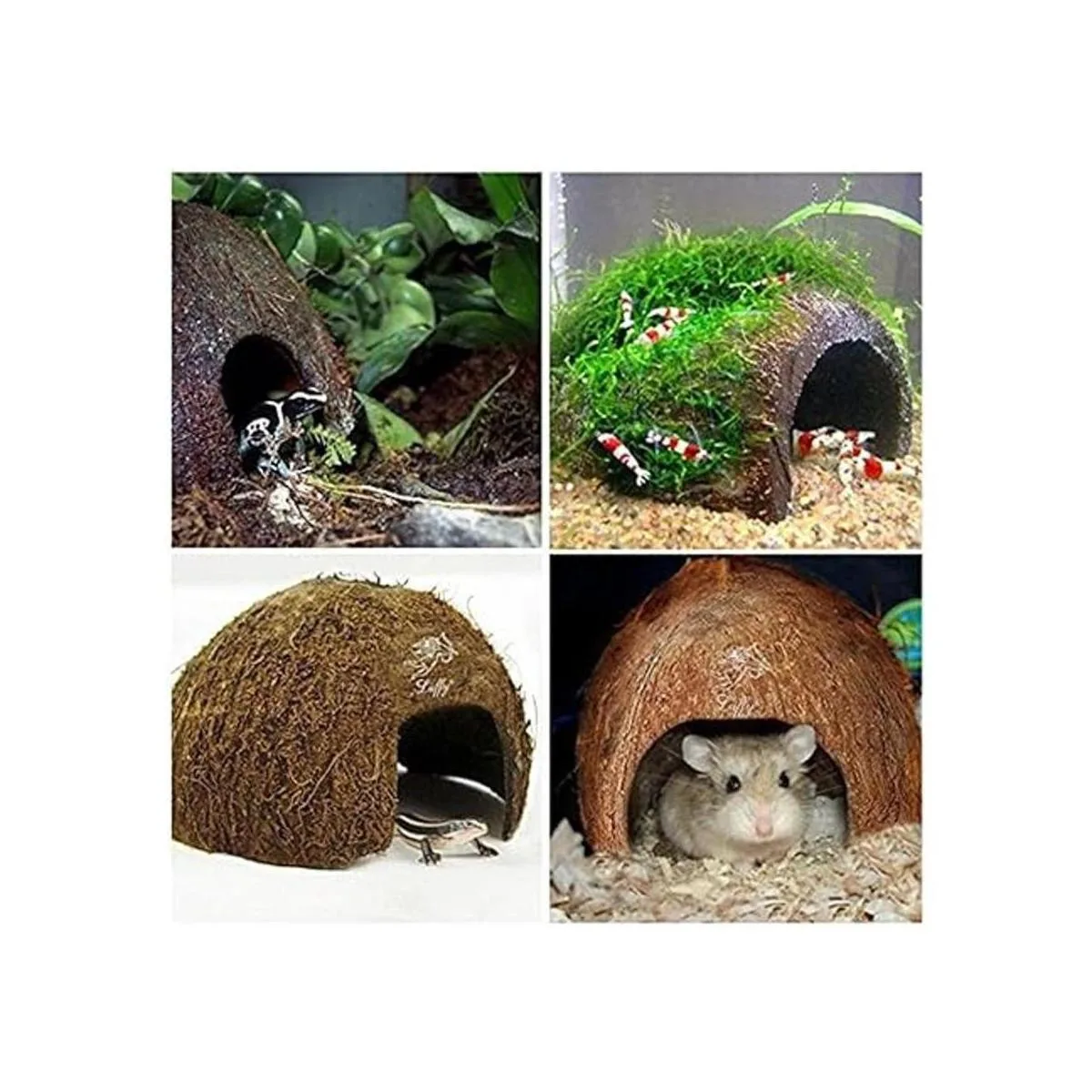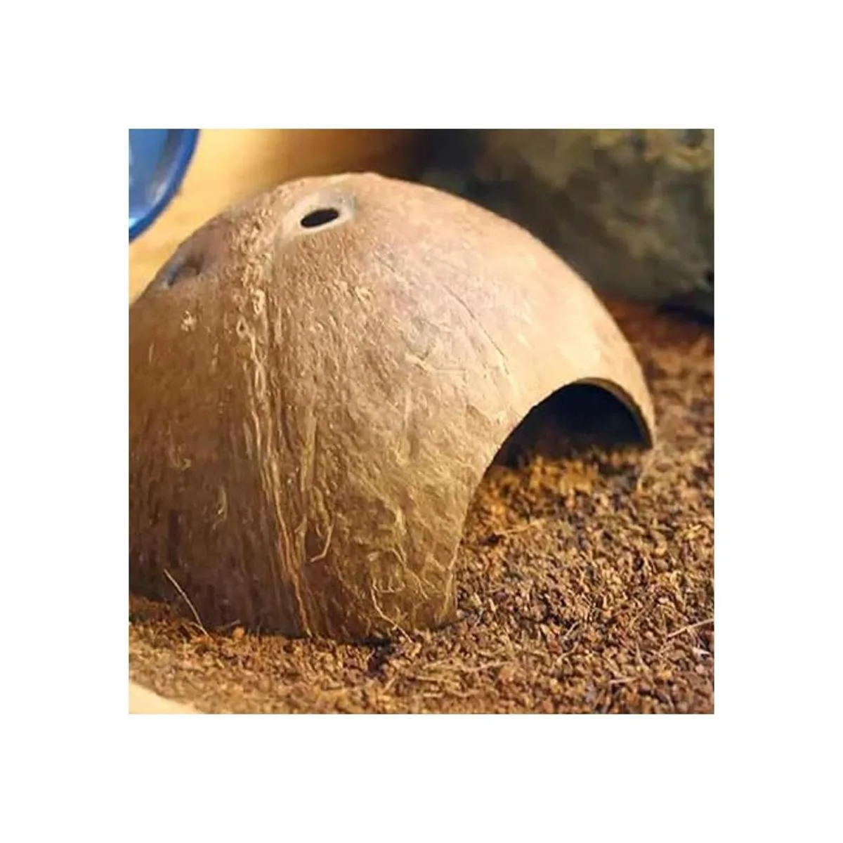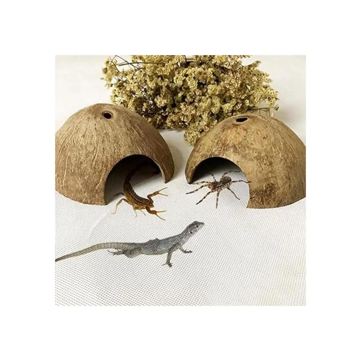 El gran espacio de este cáscara de coco 5,12 x 2,36 pulgadas proporciona un ambiente acogedor y cálido para que tu cangrejo de Hermit, arañas o lagartos se escondan.