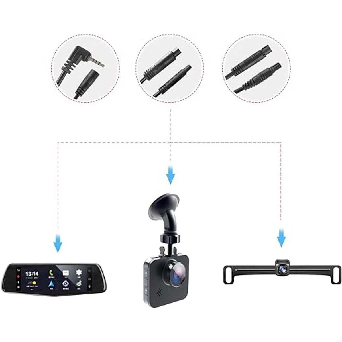 Elige el cable de extensión adecuado para cámara de visión trasera, 3 tipos de conector: 4 pines macho a hembra, 5 pines macho a hembra, 0.098 in extremo macho a hembra. Cada tipo de cables de extensión de cámara de salpicadero tiene diferentes longitud: 6.6 ft, 9.8 ft, 16.4 ft.