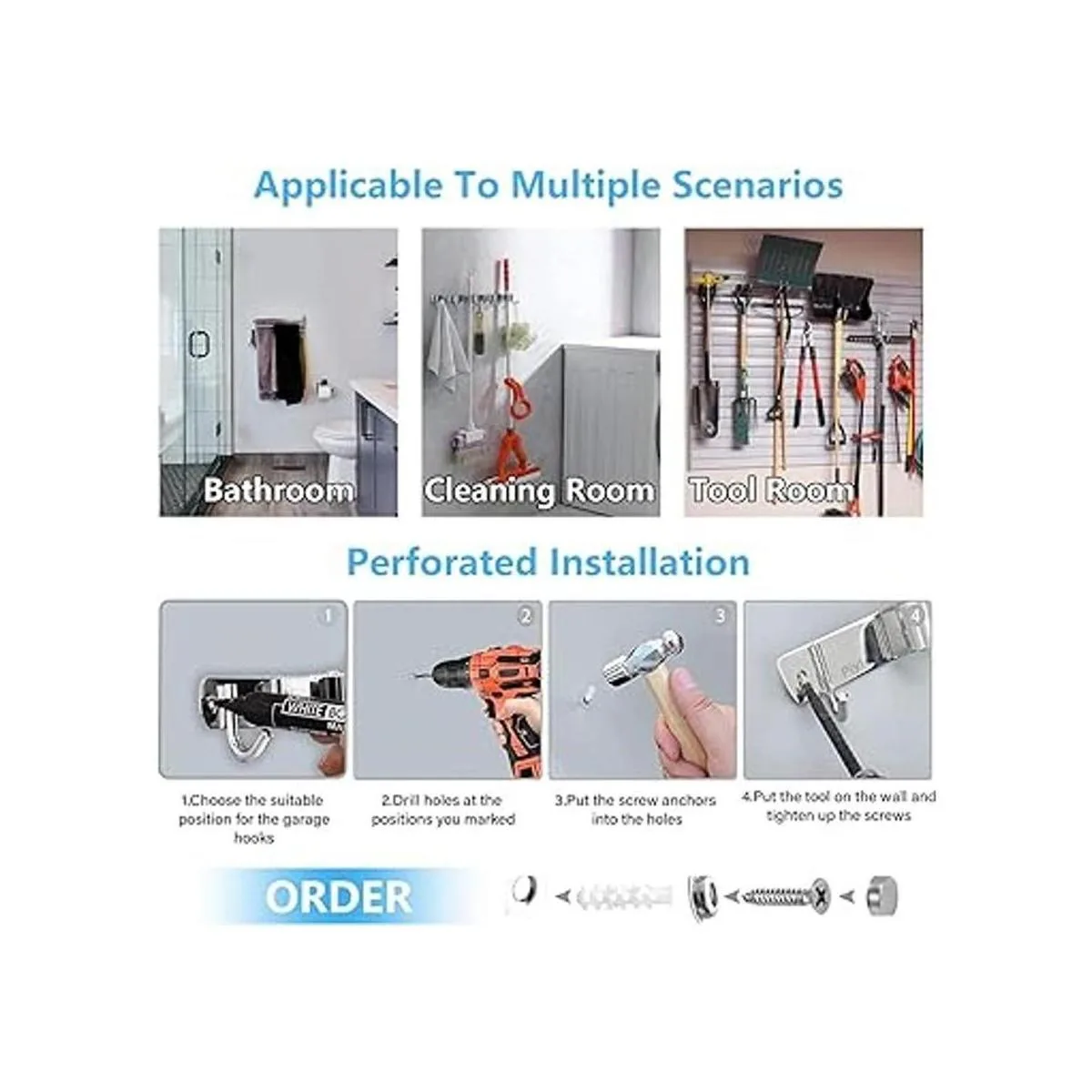 Interior o exterior: el soporte para fregona ordena tu escoba, fregona, rastrillos, herramientas y mucho más Perfecto para la cocina, armario, garaje, oficina, ideal para uso comercial, y gracias al diseño resistente a la intemperie, este soporte incluso funciona al aire libre o en el cobertizo para tus herramientas de jardín. No te preocupes por problemas de óxido.