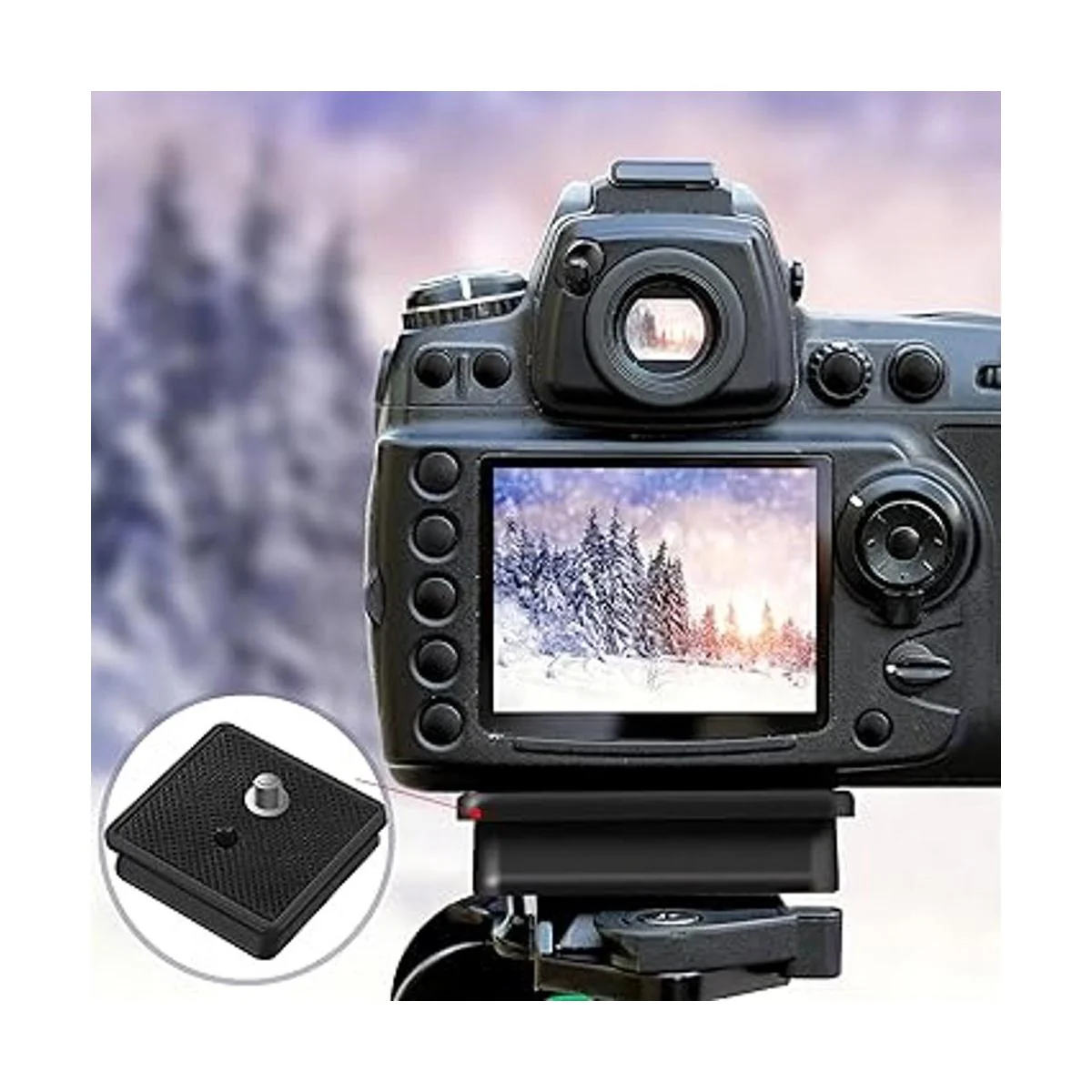 Fácil de instalar y quitar: las placas de liberación rápida se pueden fijar a la base de la cámara, lo que puede ahorrar tiempo y facilitar la instalación y desmontaje del trípode, fácil de usar