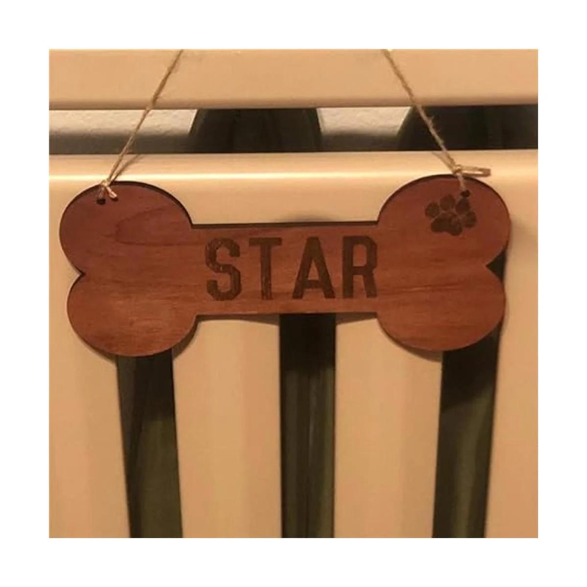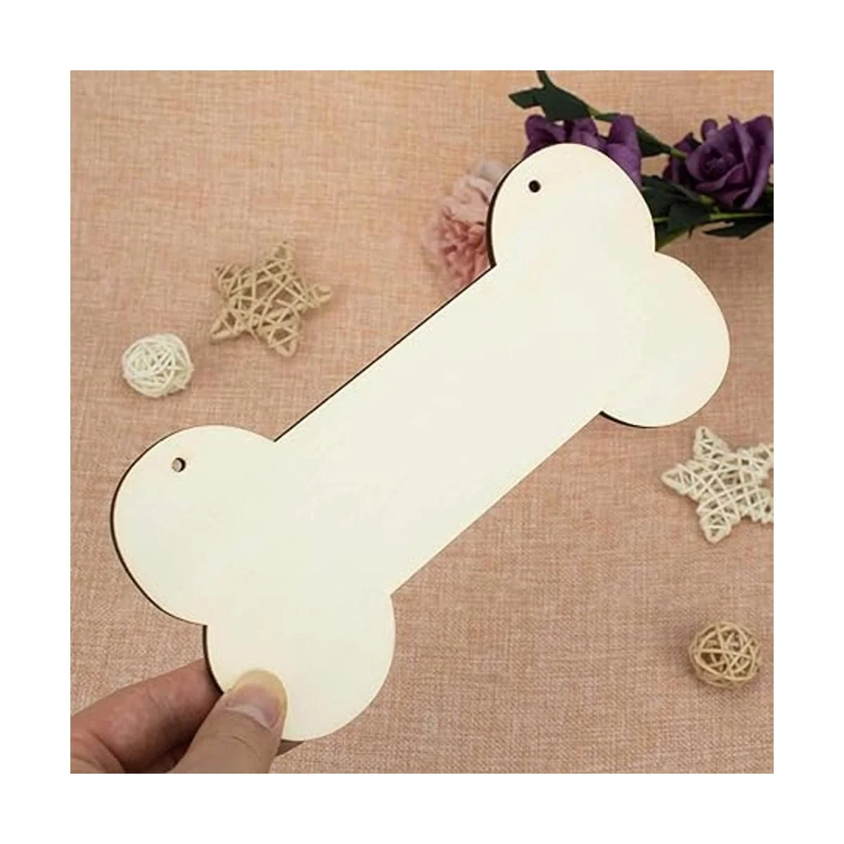Característica: placa colgante de madera con forma de hueso de perro, con 2 agujeros y cuerda, se puede utilizar para colgar decoración.