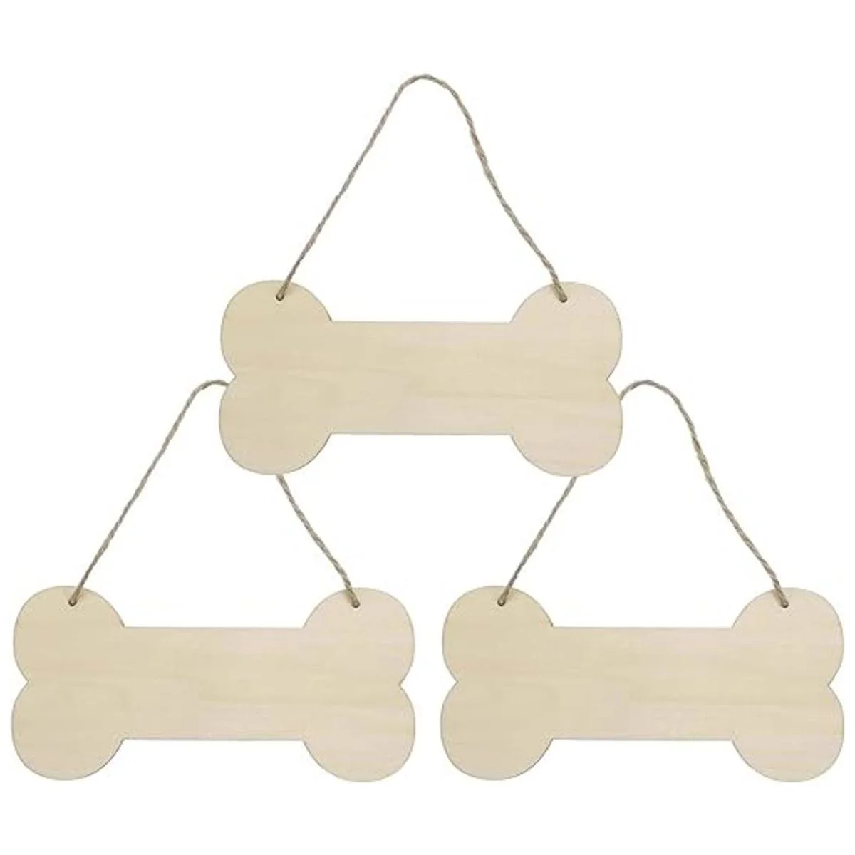 Placa de madera de hueso para perro, 3 unidades de placa de madera en blanco sin terminar de madera DIY Manualidades colgante con cuerdas para cachorro mascota casa puerta decoración de pared, 3.9 x 7.9 pulgadas 3.9 x 7.9 in
