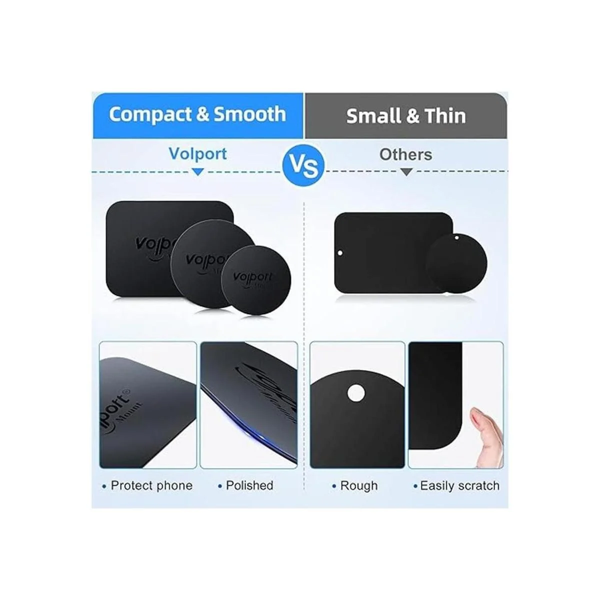 Placa de metal para imán de teléfono, paquete de 10 placas mágicas Volport con adhesivo 3M de repuesto para soporte magnético para teléfono y cuna y soporte ventilación, CD, parabrisas salpicadero, rectangular y redondo