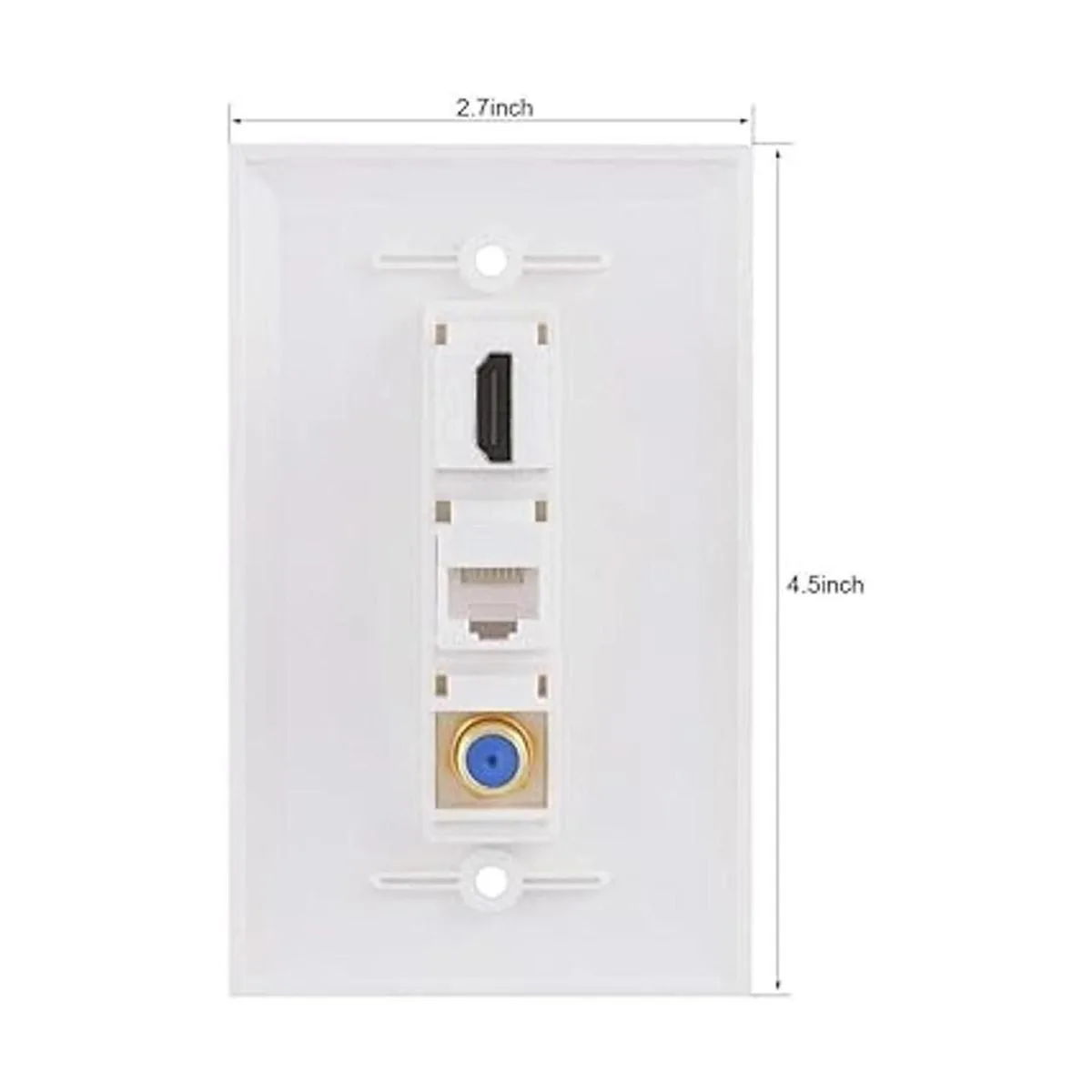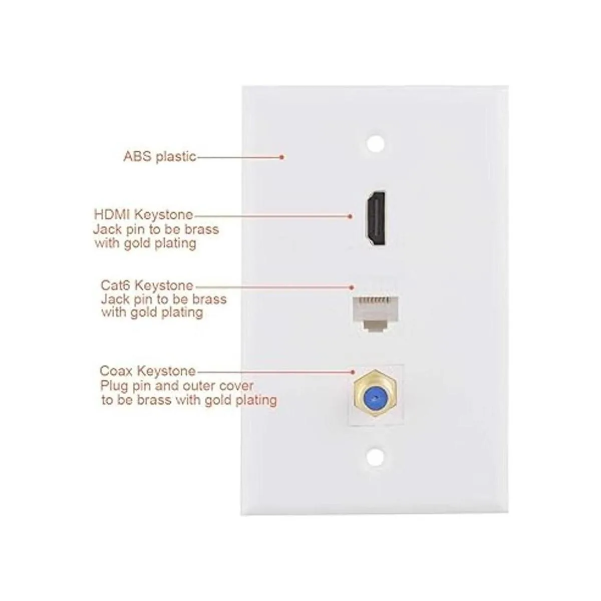 Placa de pared Ethernet coaxial HDMI, 1 puerto 4K HDMI Keystone hembra a hembra, 1 puerto coaxial Keystone hembra a hembra, 1 puerto CAT6 Keystone hembra a hembra, blanco