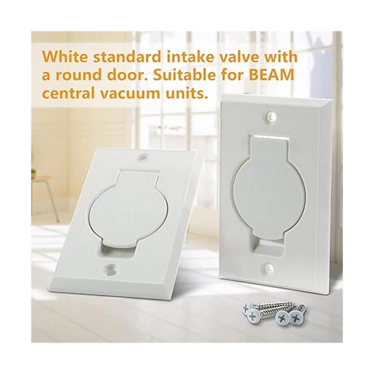 Placa de válvula de entrada de vacío central estándar, color blanco para viga, aspiradora central, diseñada para adaptarse a puertas redondas estándar, paquete de 2