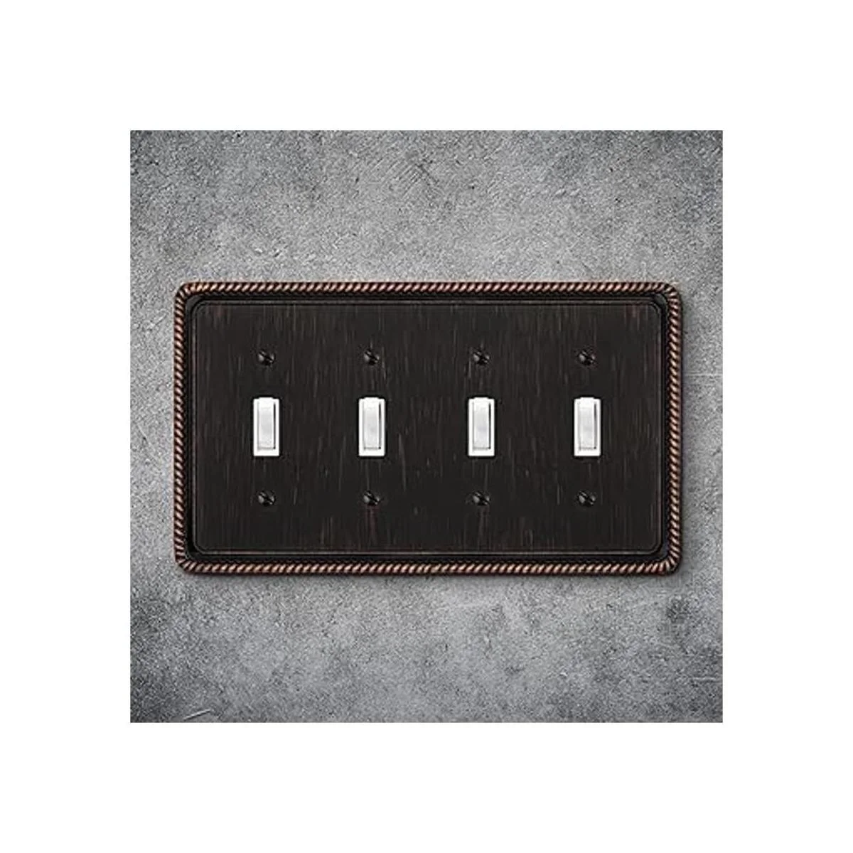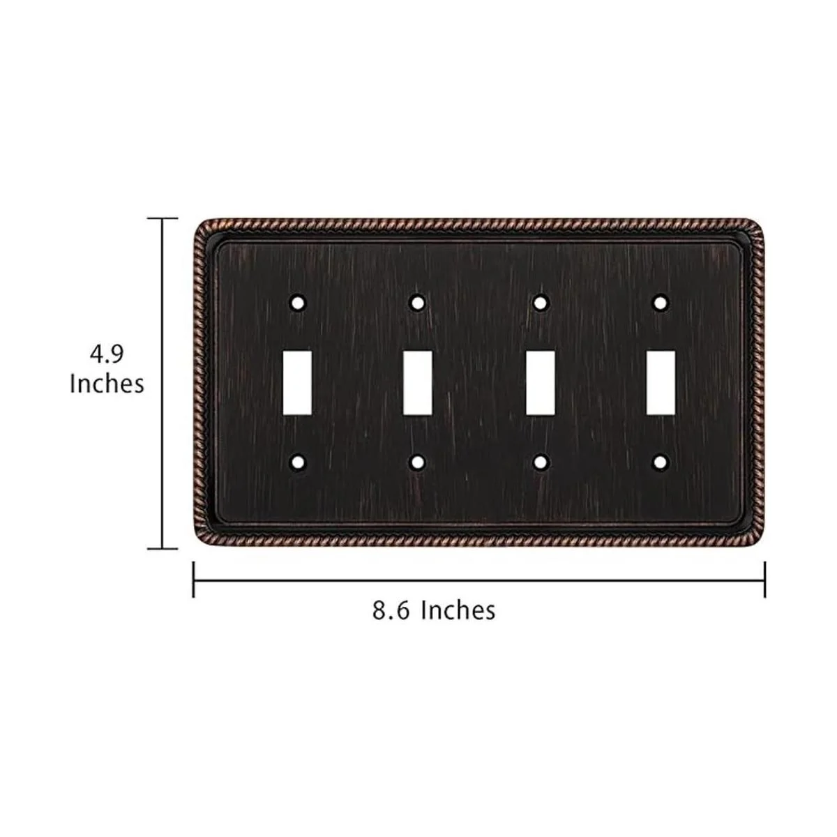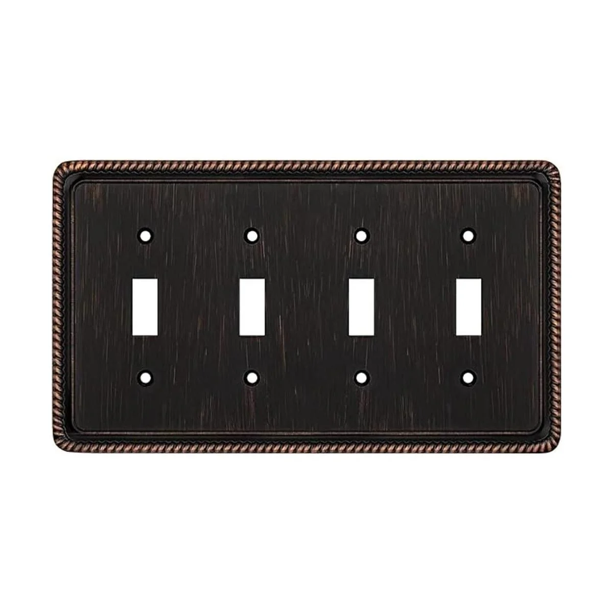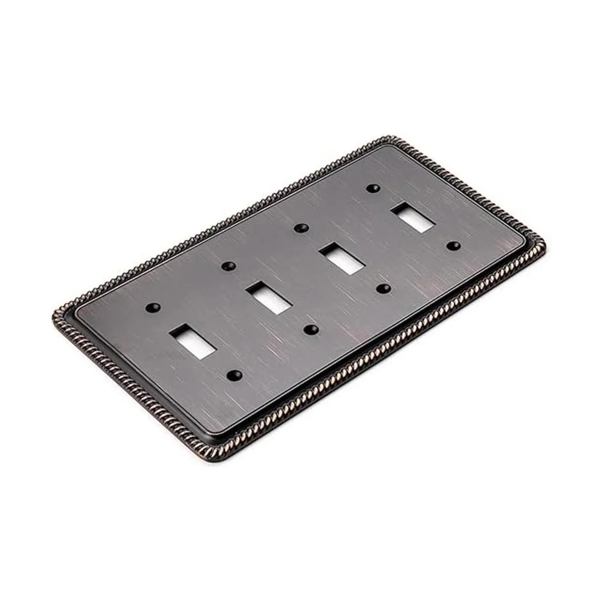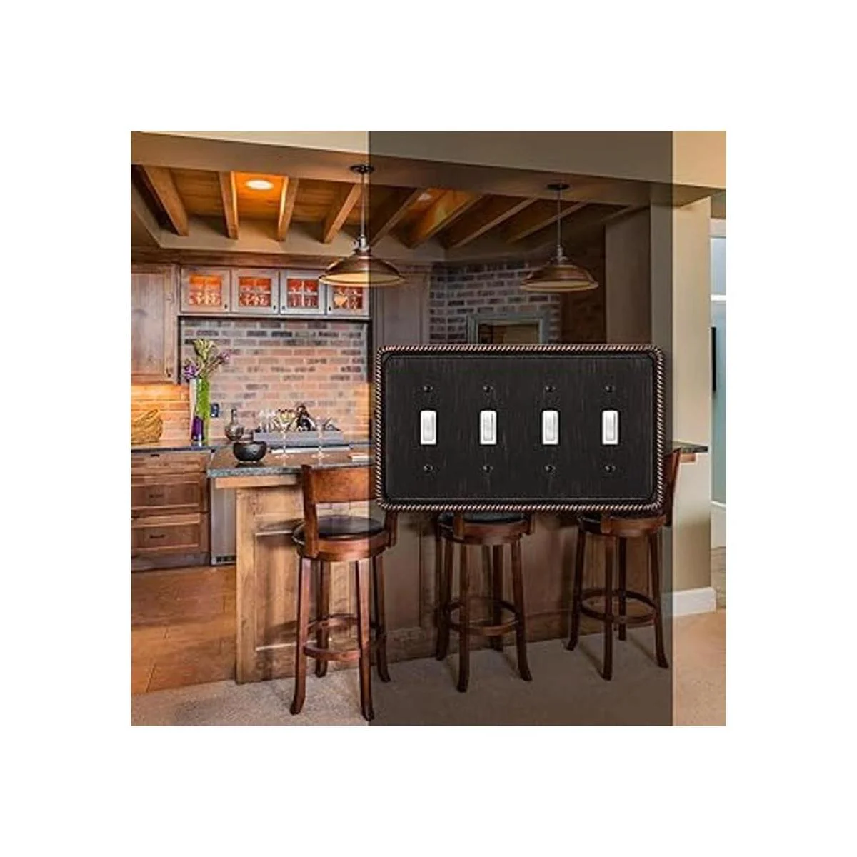 Placa decorativa de pared con borde de cuerda, cubierta de salida de placa de interruptor, bronce envejecido palanca cuádruple, bronce envejecido