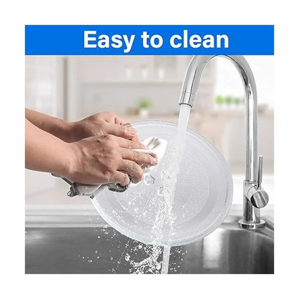 Material duradero y funciona perfectamente: nuestra bandeja giratoria de vidrio para microondas de 9.6 in está hecha de vidrio grueso apto para alimentos. Resistencia al calor, superficie lisa y fácil de limpiar, y patrón revuelto en la parte posterior para una mejor resistencia al deslizamiento, el diseño de arco evita cortes accidentales