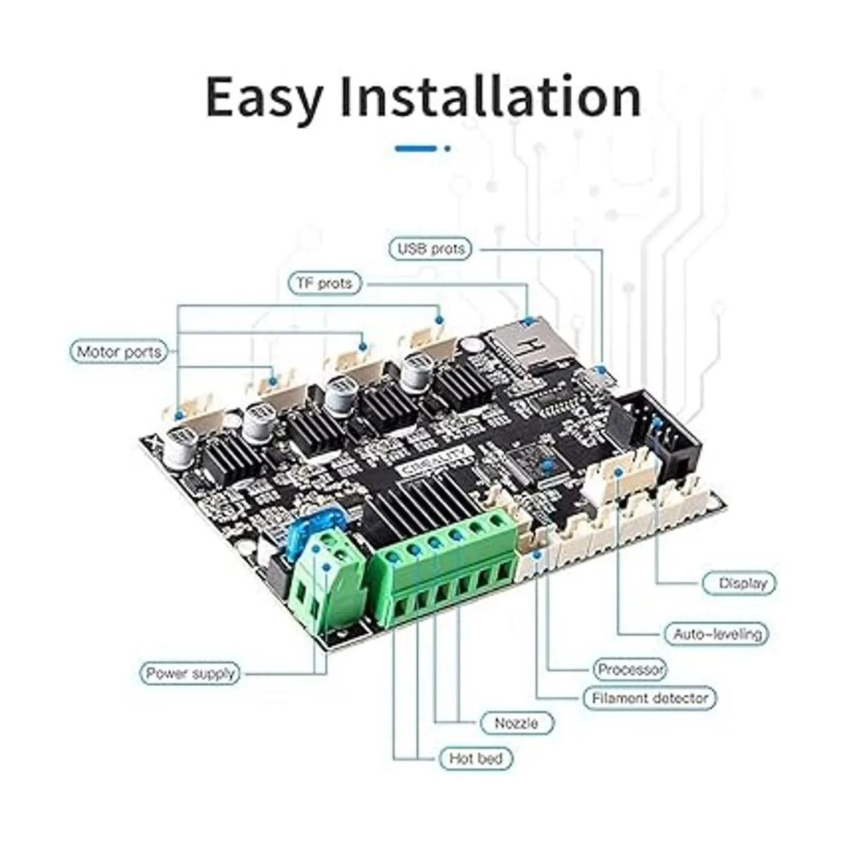 Súper silencioso: la placa base silenciosa puede reducir el ruido del motor paso a paso. Chip de accionamiento de motor ultra silencioso TMC, diseño de sistema ultrasilencioso, para que la máquina esté siempre funcionando a decibelios bajos 50 dB.