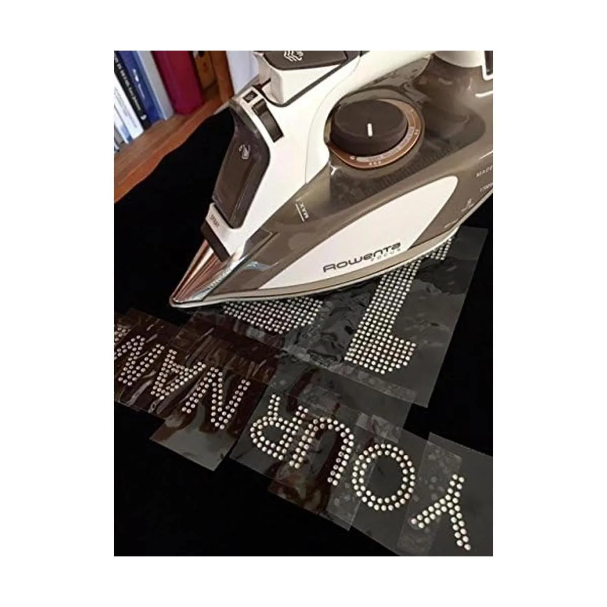 Plancha para planchar con diamantes de imitación para la madre de la novia de 8,25 x 3,25 pulgadas con transferencia de Hotfix