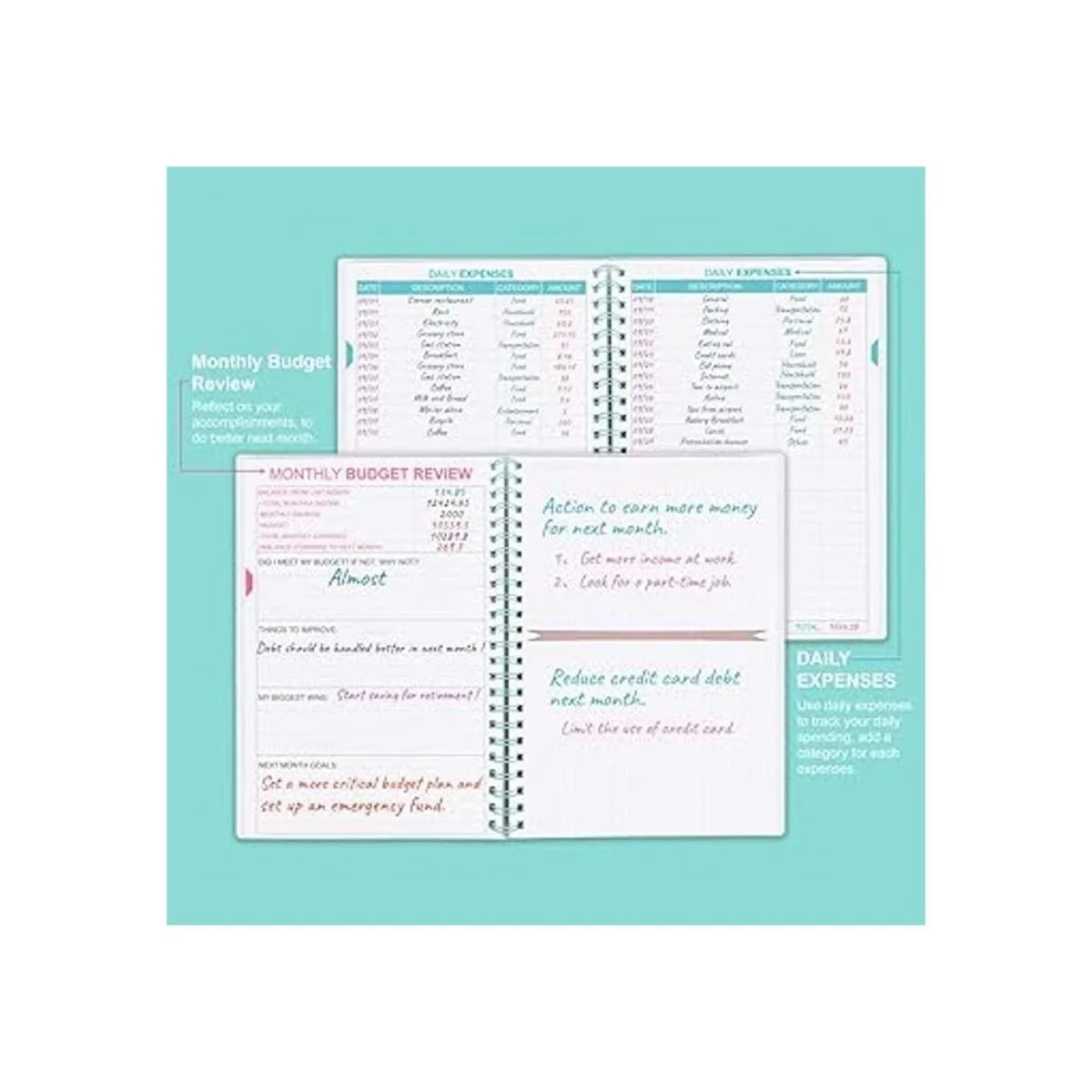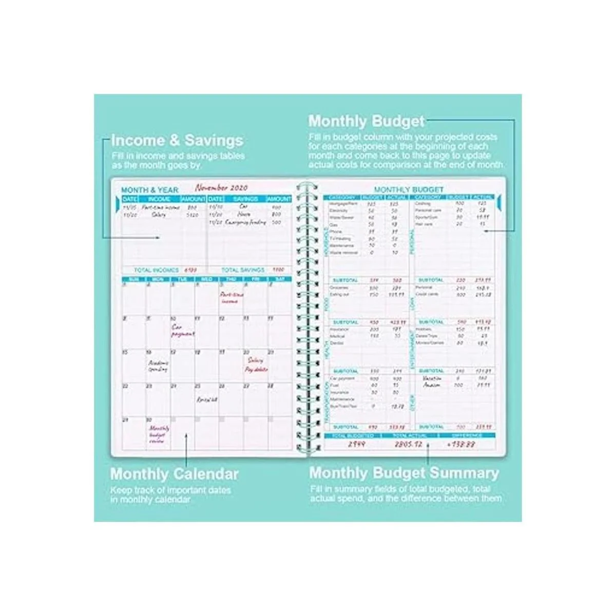 Planificador de presupuestos organizador mensual de finanzas con cuaderno de seguimiento de gastos para administrar tu dinero de manera eficaz, planificador de finanzas sin fecha, libro de cuentas, comienza en cualquier momento, 1 año de uso, A5, verde azulado