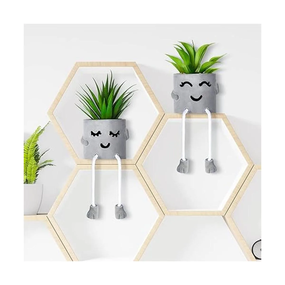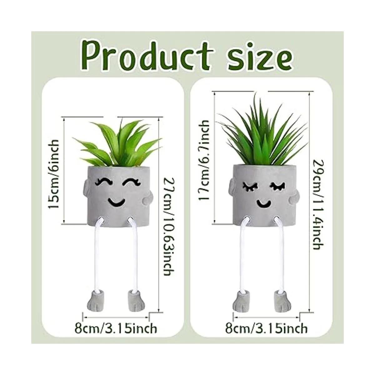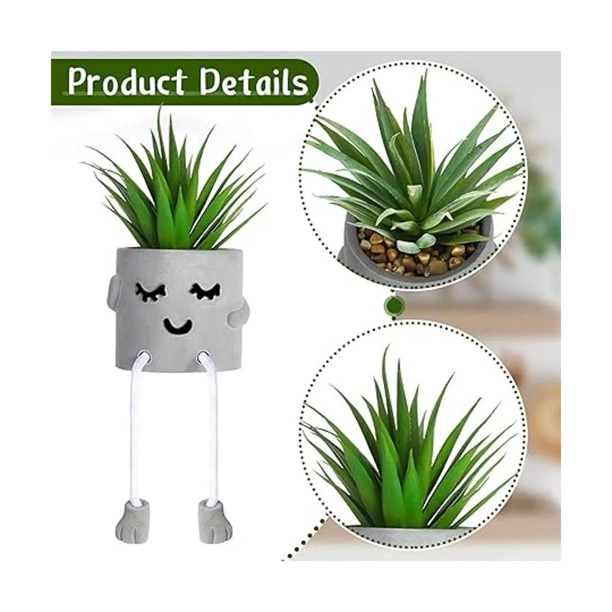 Diseño atractivo: la decoración de escritorio suculenta adopta 2 estilos de expresión diferentes de entrecerrar los ojos y tímida, diseño distintivo de patas colgantes y chapa gris, elegante y encantador en apariencia, y hace que tu escritorio tenga un nuevo aspecto