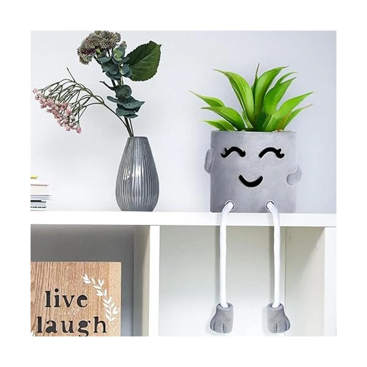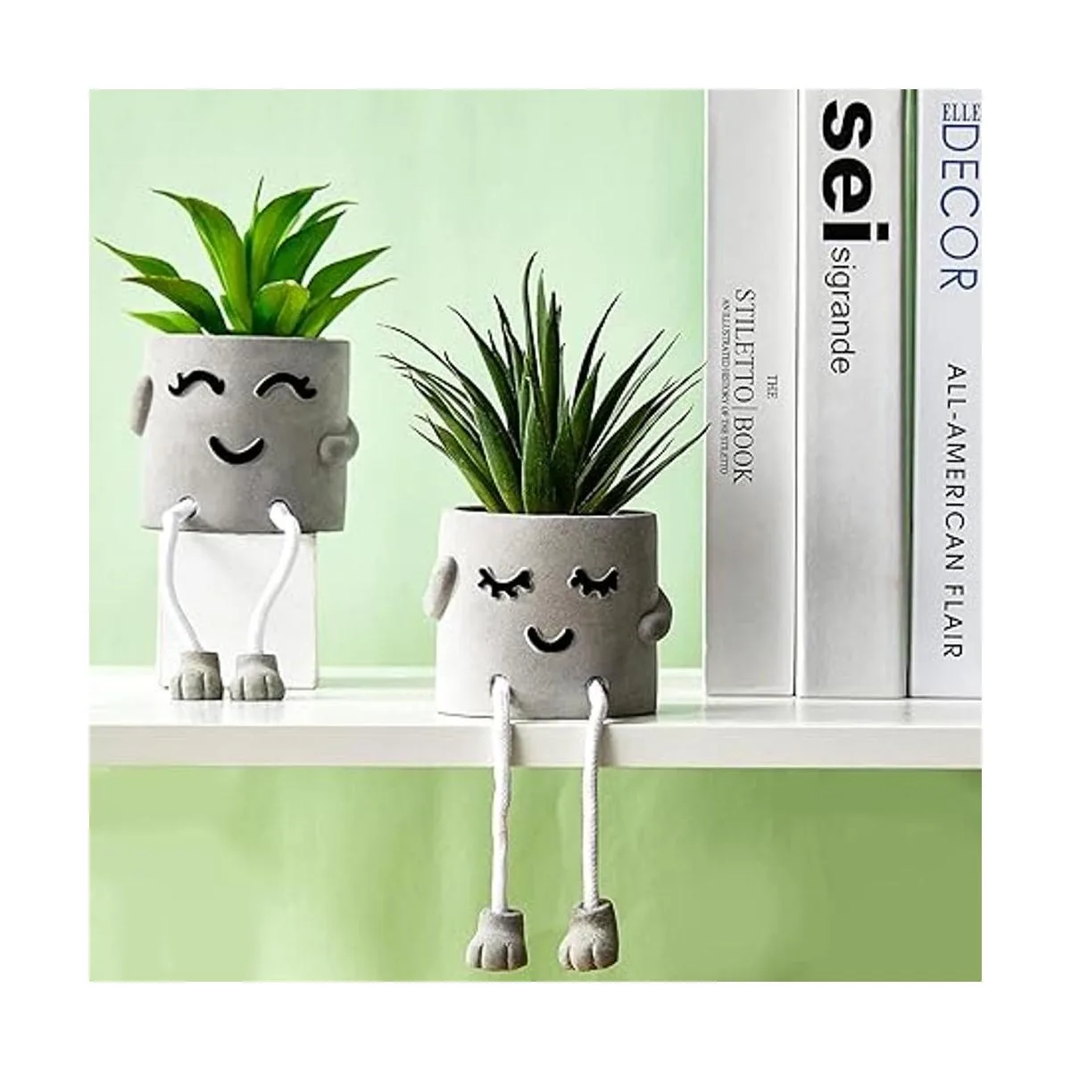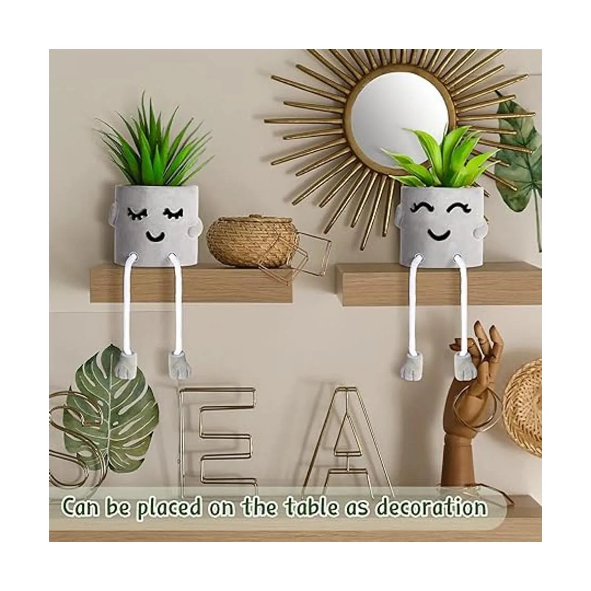 Diseño atractivo: la decoración de escritorio suculenta adopta 2 estilos de expresión diferentes de entrecerrar los ojos y tímida, diseño distintivo de patas colgantes y chapa gris, elegante y encantador en apariencia, y hace que tu escritorio tenga un nuevo aspecto