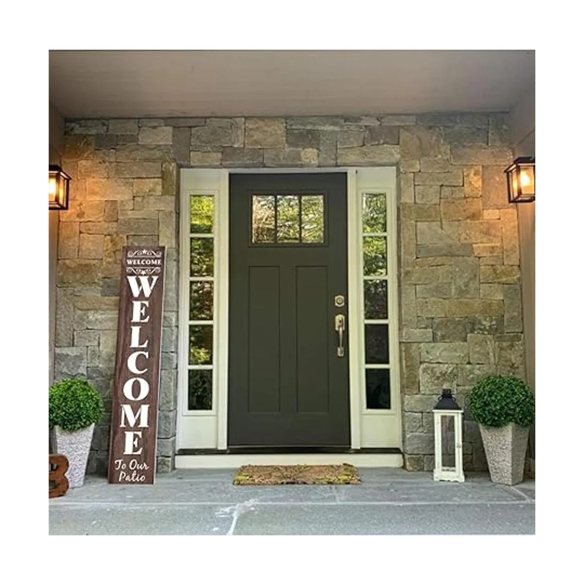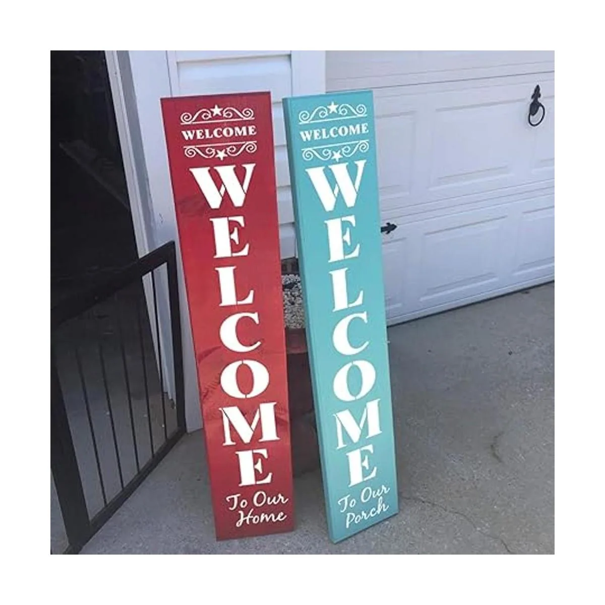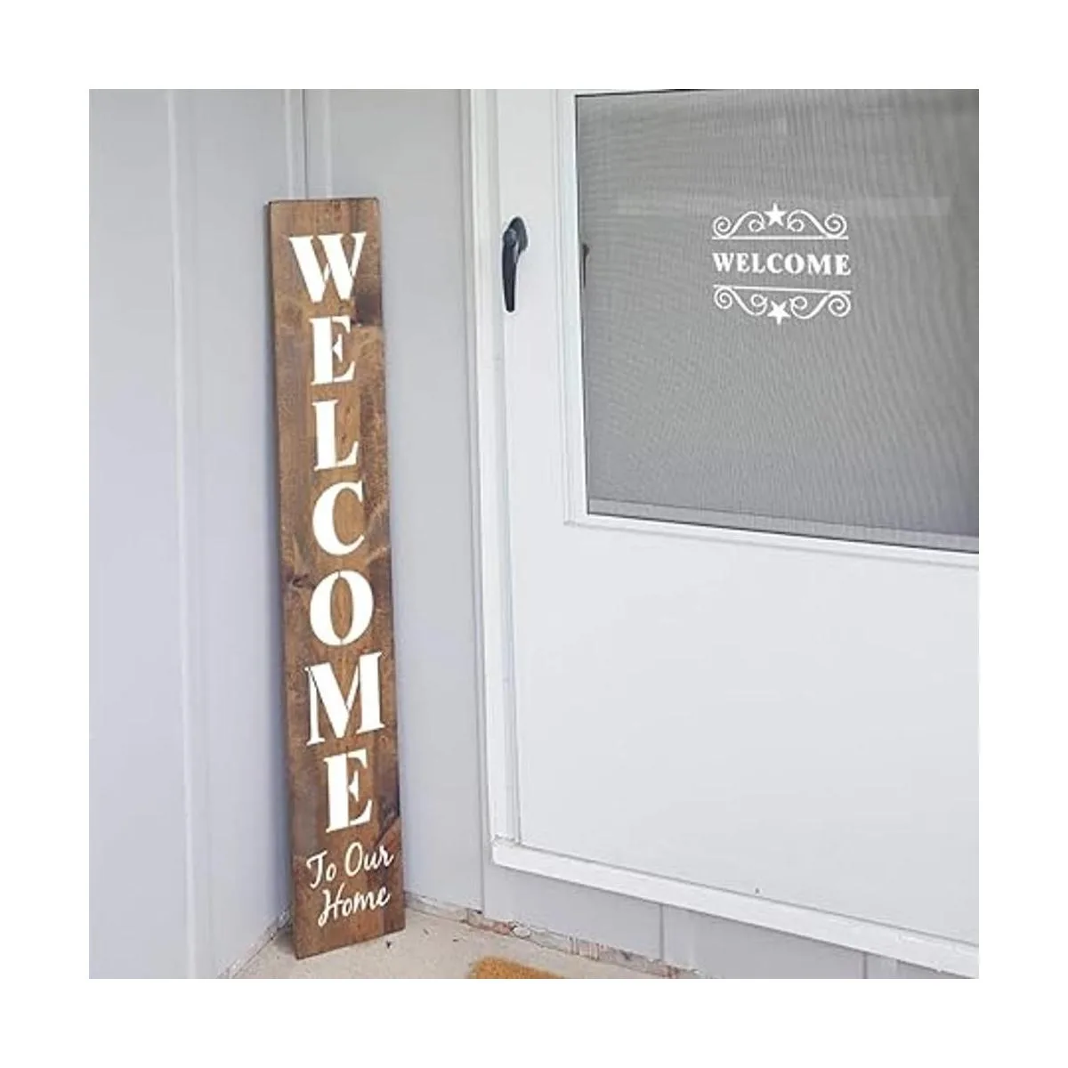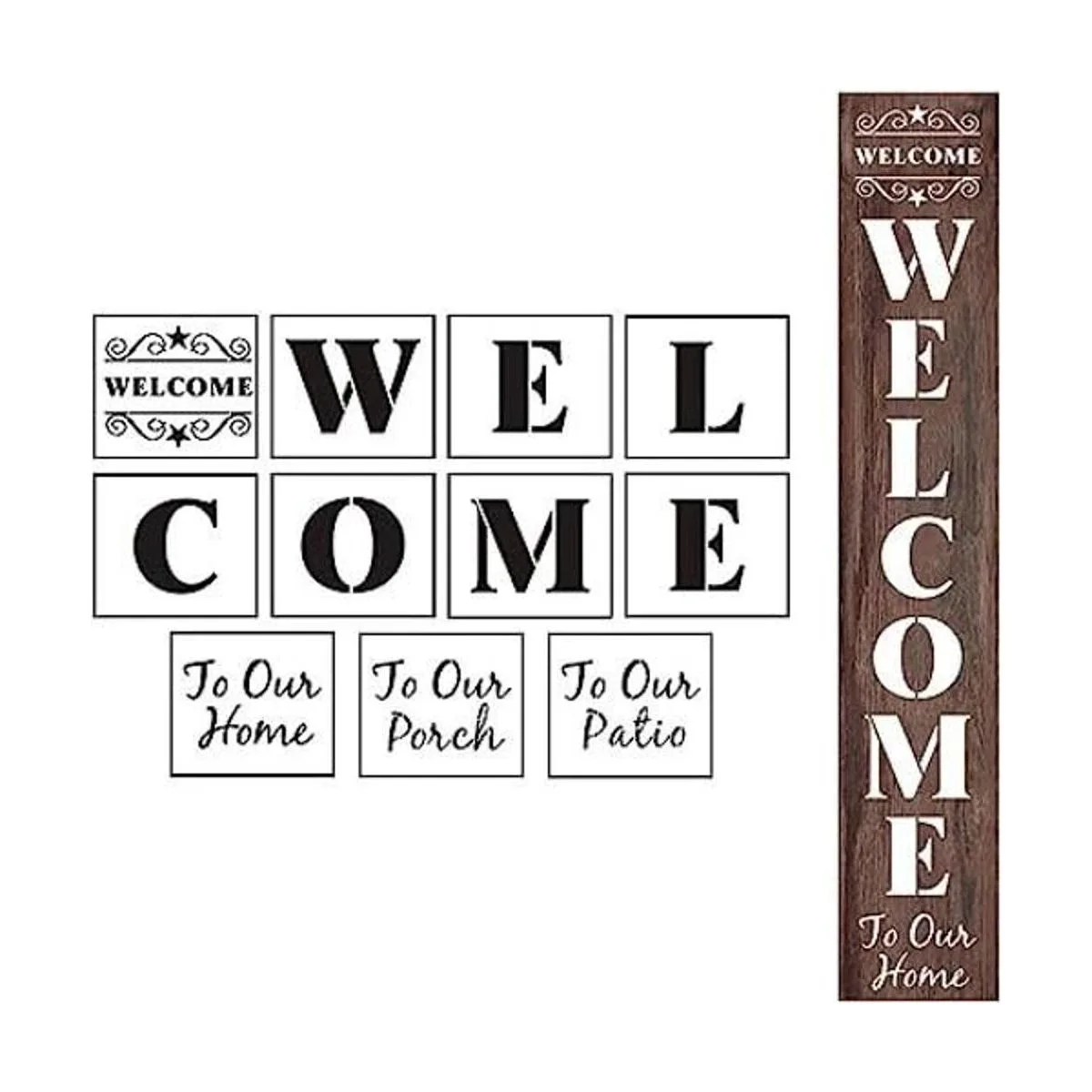 Plantillas de bienvenida para pintar sobre madera, paquete de 11 plantillas grandes de letreros de bienvenida verticales para letreros de madera, plantillas de letras reutilizables para el hogar, patio, letreros de porche y decoraciones de puerta delantera