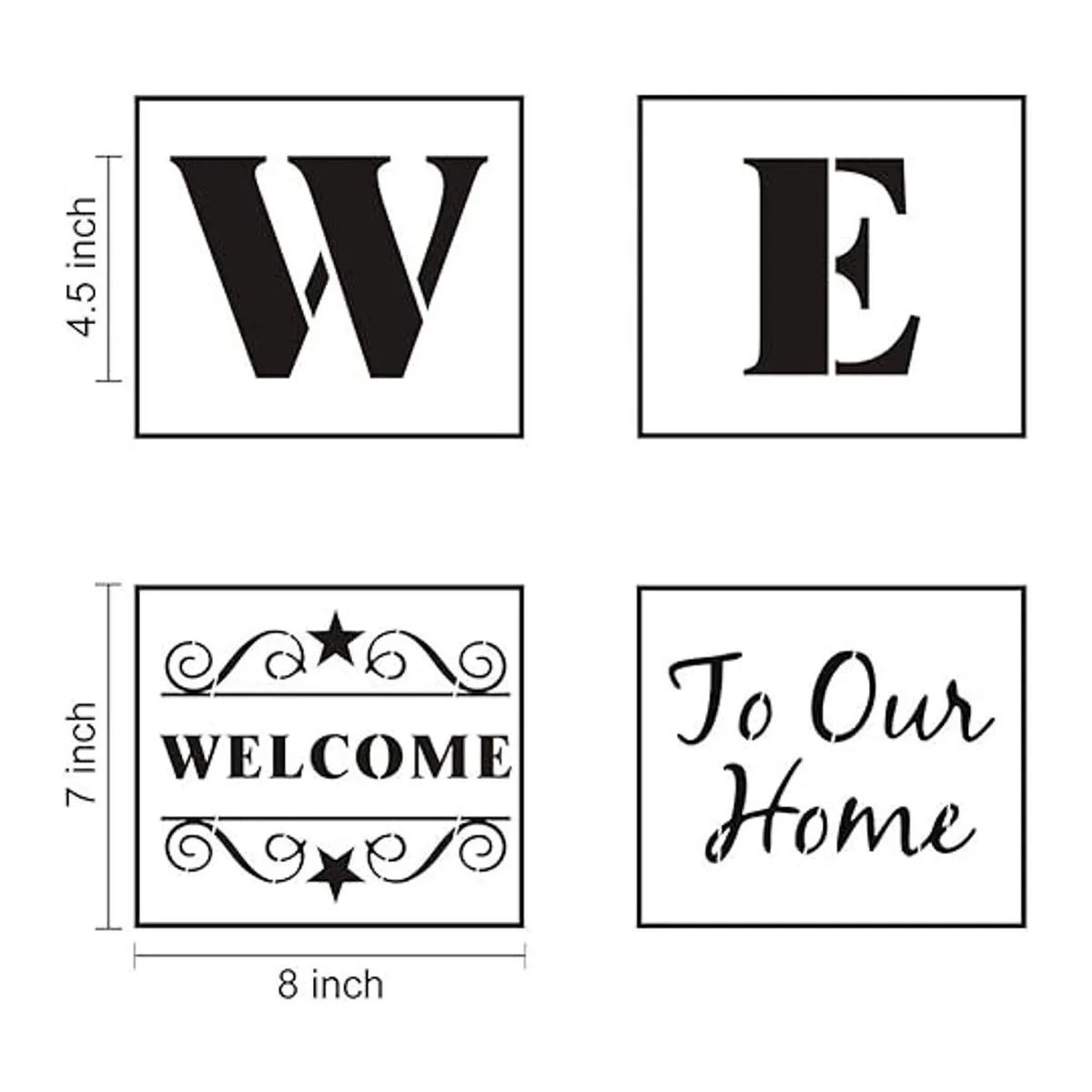 Amplia gama de aplicaciones: este juego de plantillas de bienvenida está hecho de material PET duradero y flexible, tiene una superficie lisa que te permite aplicarlas en la mayoría de superficies planas: madera, papel, tela, lienzo, arpillera, vidrio, metal, roca, cemento, azulejos, suelos, muebles, paredes, etc. Juego completo de plantillas de letras para satisfacer tu creatividad artística en cualquier momento. Son ideales para carteles de madera, carteles, camisetas, publicidad, decoración del hogar, decoraciones de fiesta y mucho más.