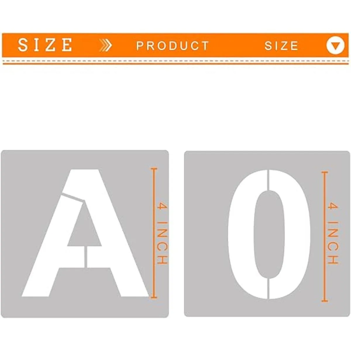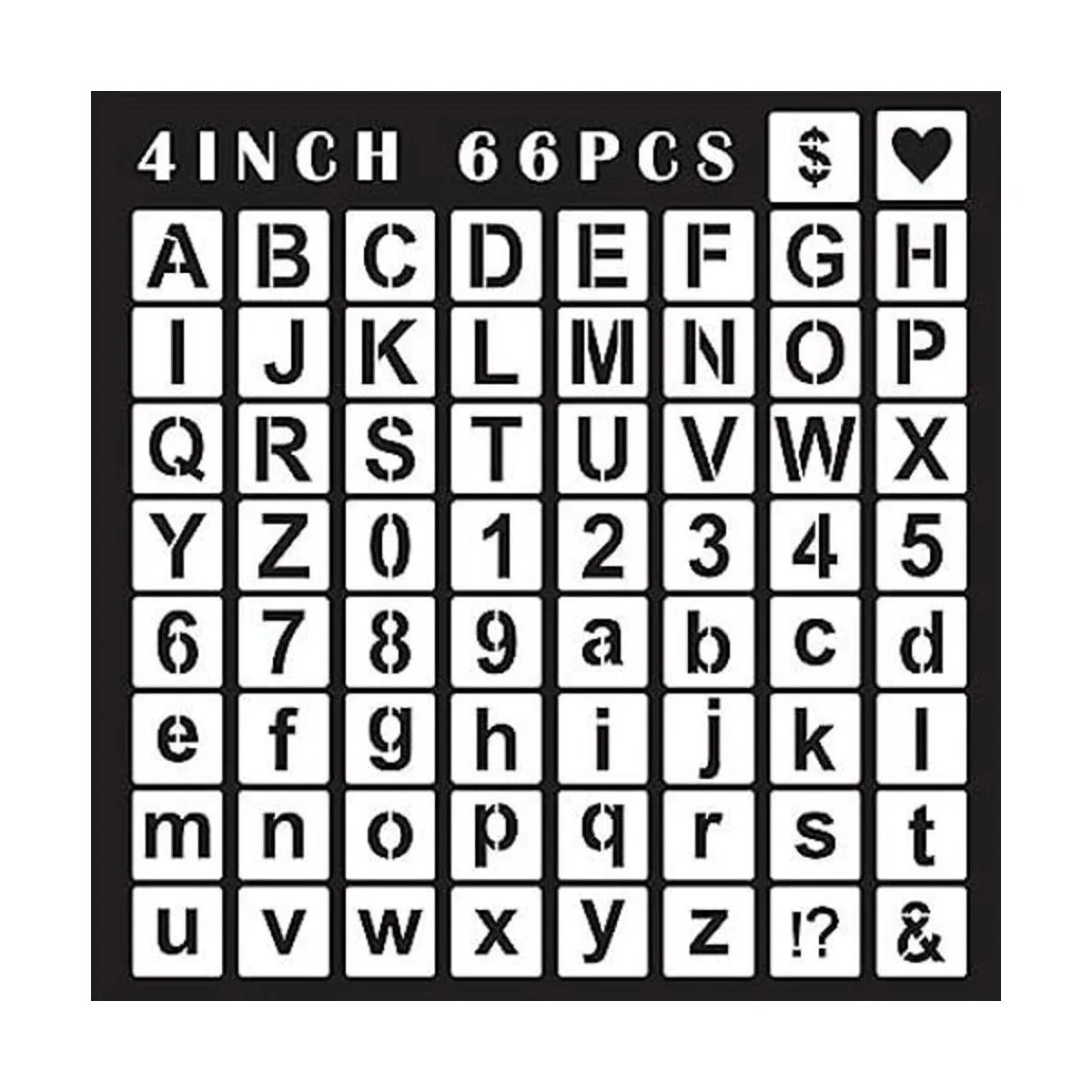 Plantillas de letras de 4 pulgadas, 66 plantillas de números de símbolos reutilizables plantillas del alfabeto, plantillas de arte para pintar en madera, pared, tela, roca, pizarra, señalización y proyectos de arte de bricolaje