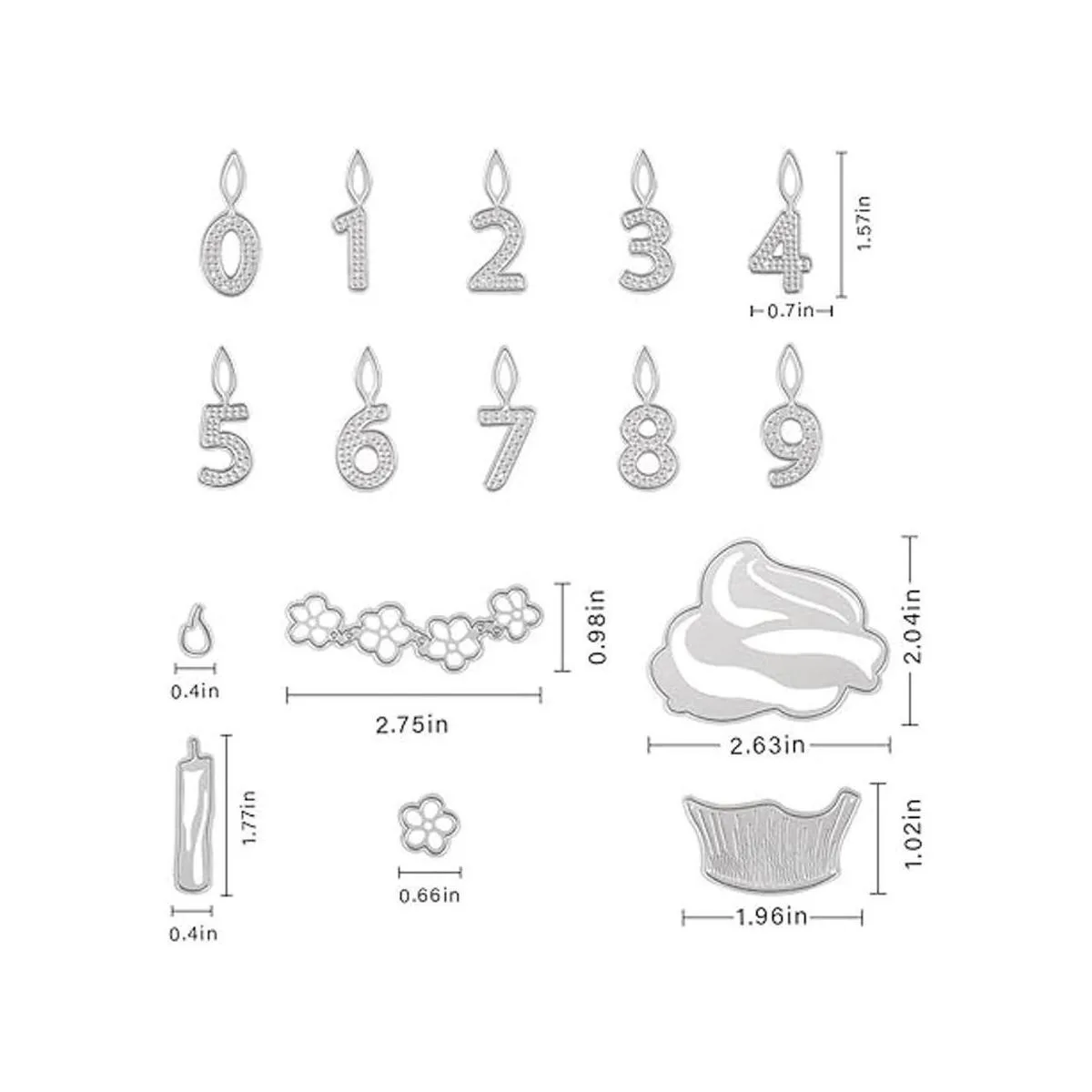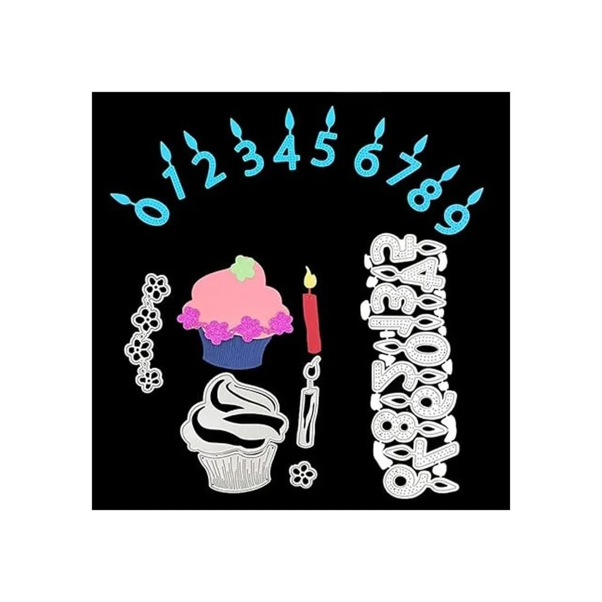 Plantillas de metal para tartas de cumpleaños y números para cortar plantillas de metal, herramienta de grabación en relieve para álbumes de papel y tarjetas, álbumes de recortes, manualidades, troquelado