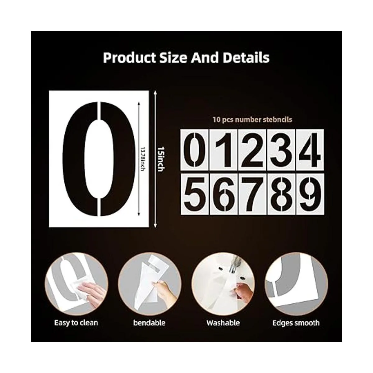 Plantillas de números grandes de 15 pulgadas, plantillas reutilizables de gran número, plantillas digitales de plástico, plantillas para plantillas de pasteles, plantillas de pintura, plantillas de números