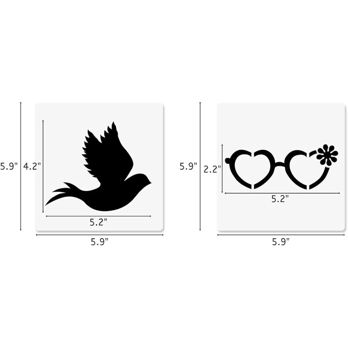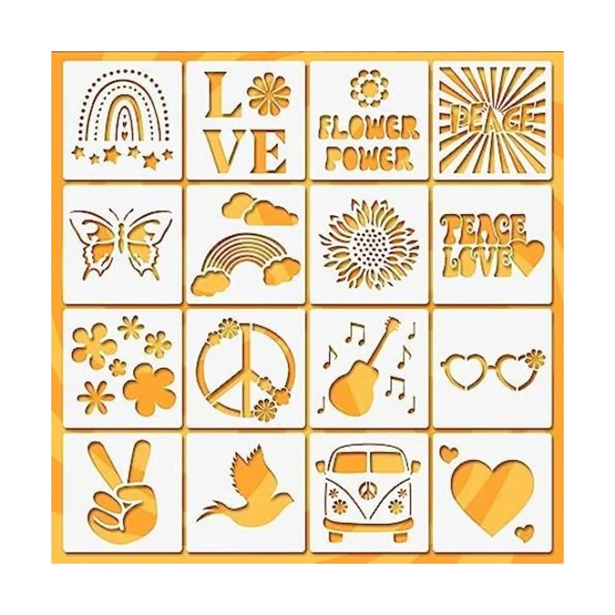 Plantillas de paz y amor, 16 plantillas hippie, estilo bohemio, floral, reutilizable, para pintar, papel, dibujar, muebles, tela, 6 x 6 pulgadas