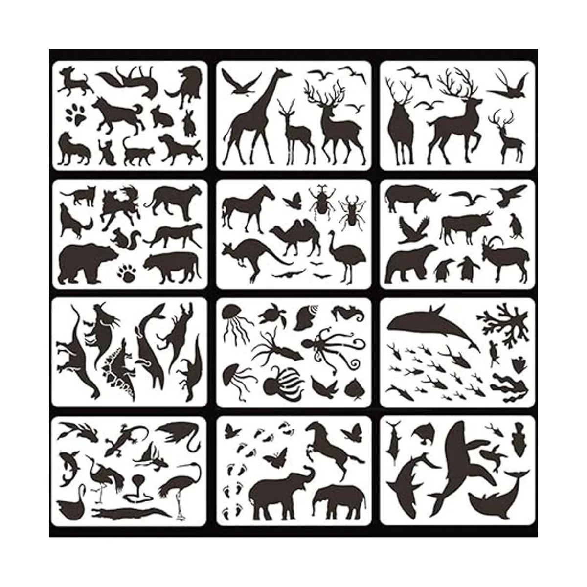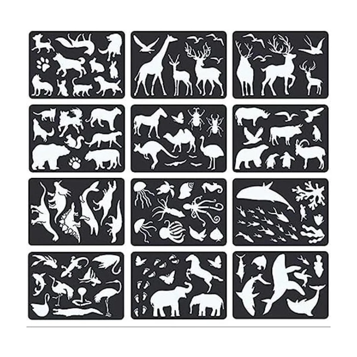 Paquete: 12 plantillas diferentes consisten en la vida marina, animales del bosque, dinosaurios, etc.