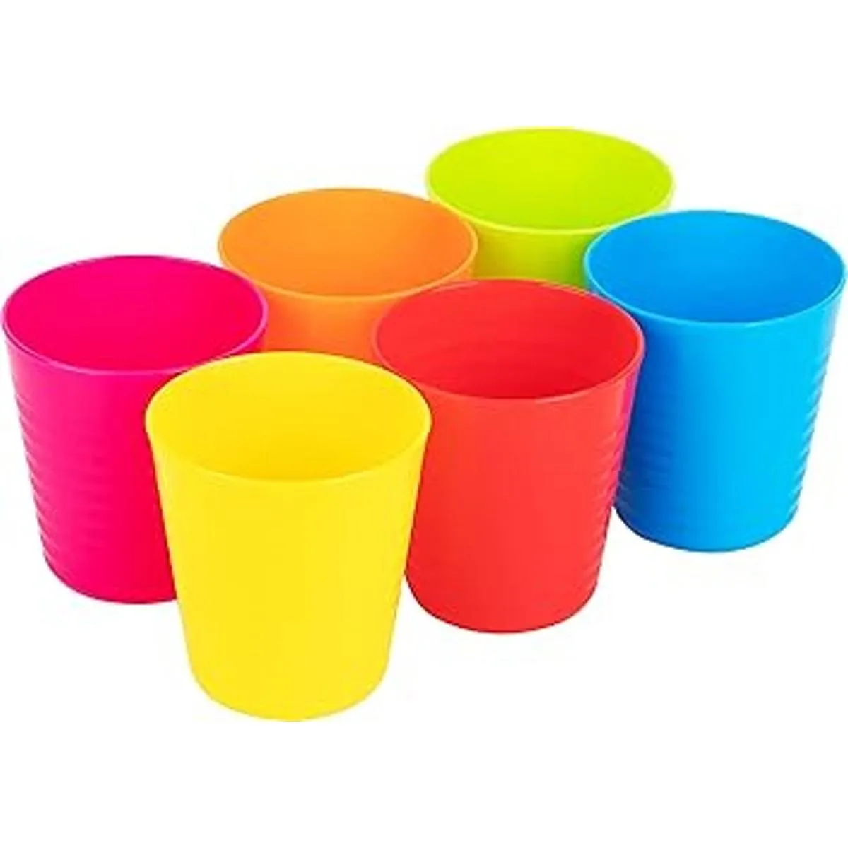 Paquete económico, tamaño perfecto: el juego de vasos de plástico para niños incluye 6 vasos de plástico reutilizables en 6 colores brillantes surtidos. Capacidad de 8 onzas, altura: 3 pulgadas, el diámetro en la parte superior de los vasos para niños es de 3 pulgadas, el diámetro en la parte inferior de 2 pulgadas, tazas de plástico pequeñas perfectas para niños