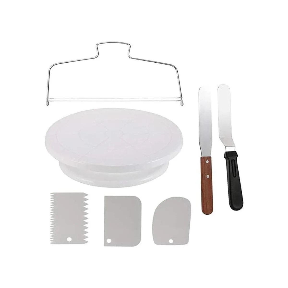 Conjunto de 1 plato giratorio para decoración de pasteles, 2 espátulas para glaseado, 3 bases de cartón. Es más completo y más profesional.