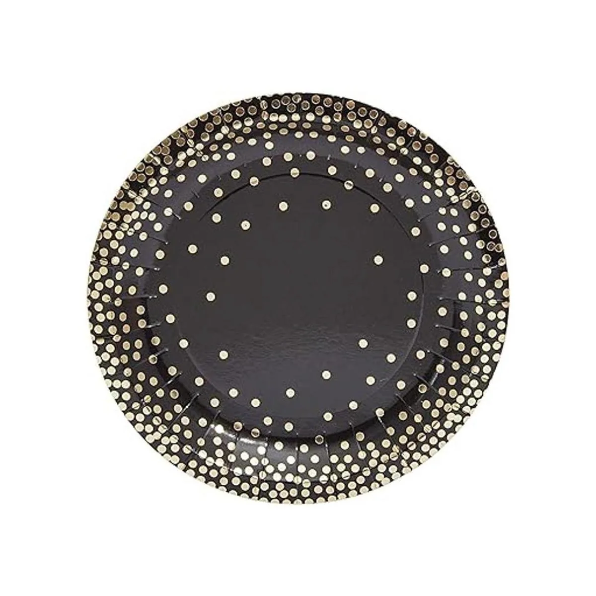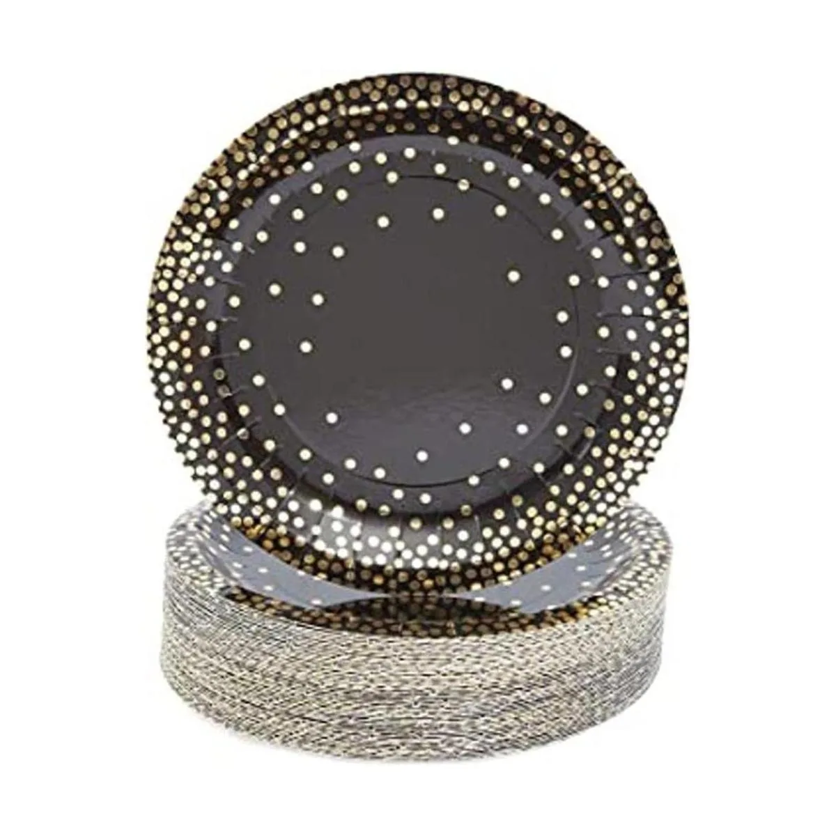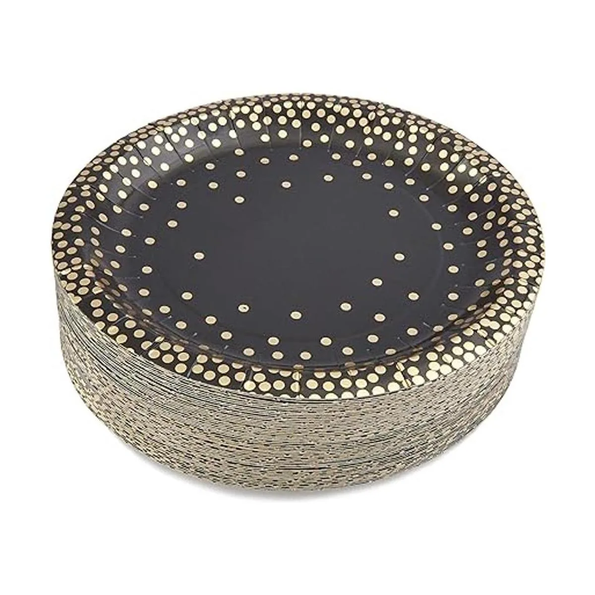 Platos de papel de aluminio dorado para fiesta de 7 pulgadas para postre de tartas paquete de 48, negro