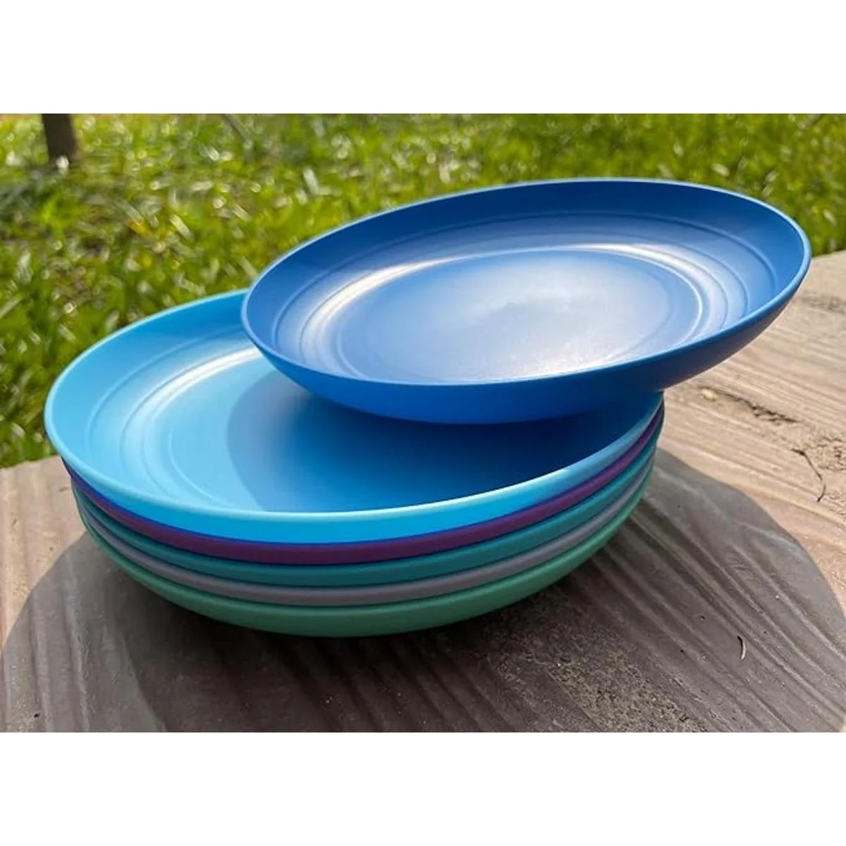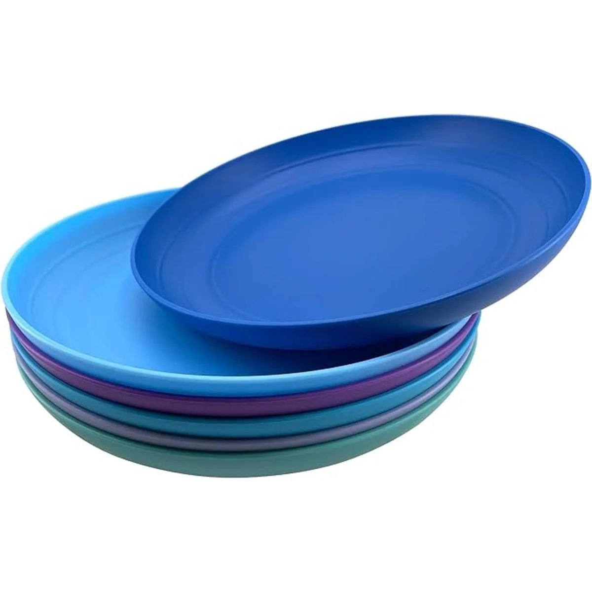 Platos de plástico reutilizables de 8 pulgadas, sin BPA, aptos para lavavajillas, apto para microondas, juego de 6 para niños en interiores y exteriores multicolor