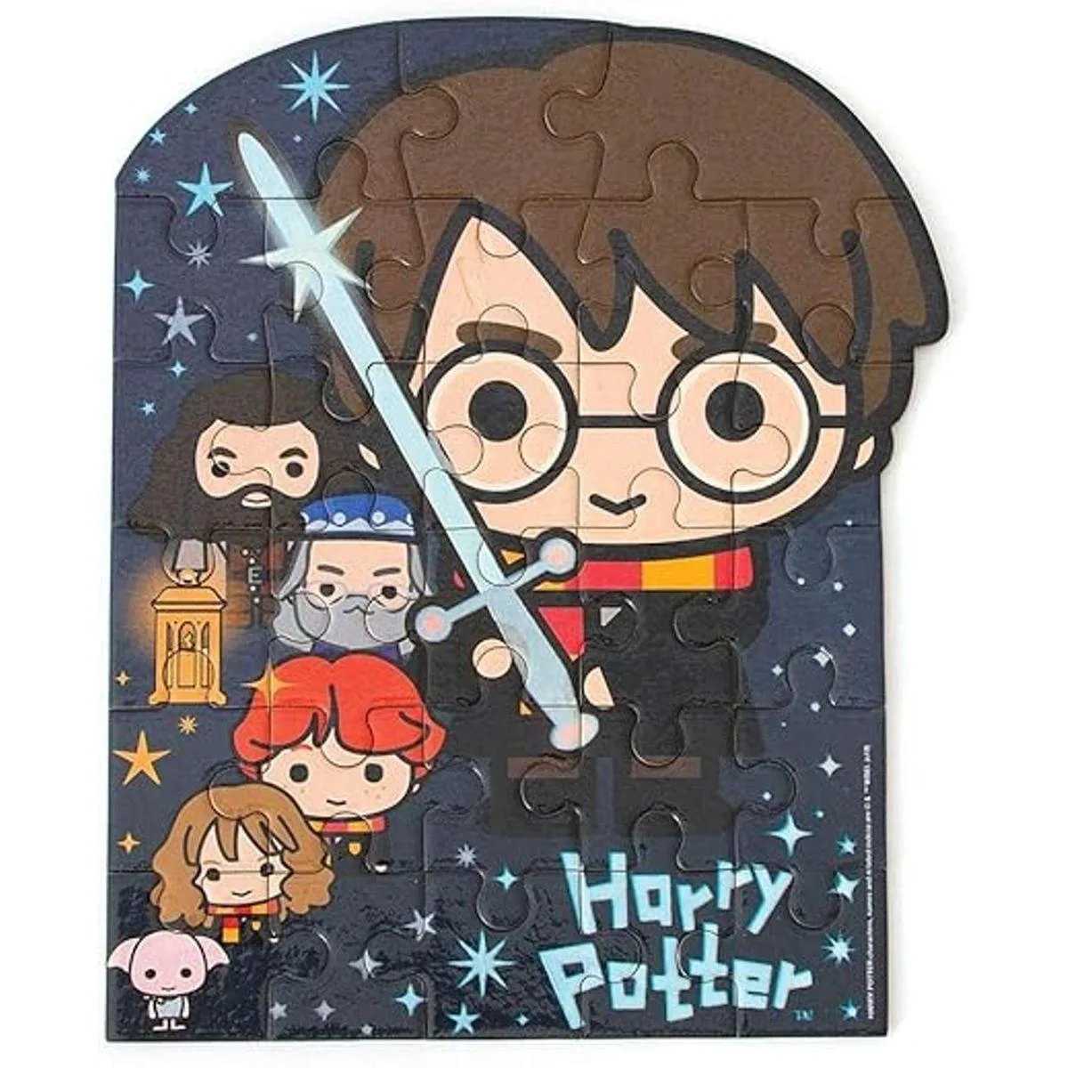 Rompecabezas tratando de encontrar una actividad divertida, rápida y educativa para un niño Este rompecabezas brillante, audaz y que brilla en la oscuridad con obras de arte oficiales de Harry Potter es la respuesta