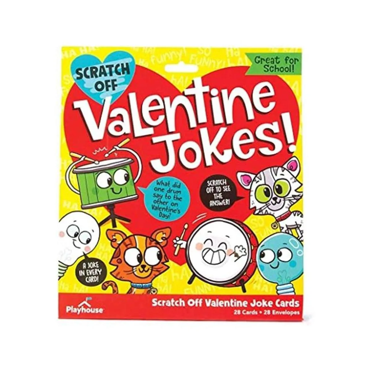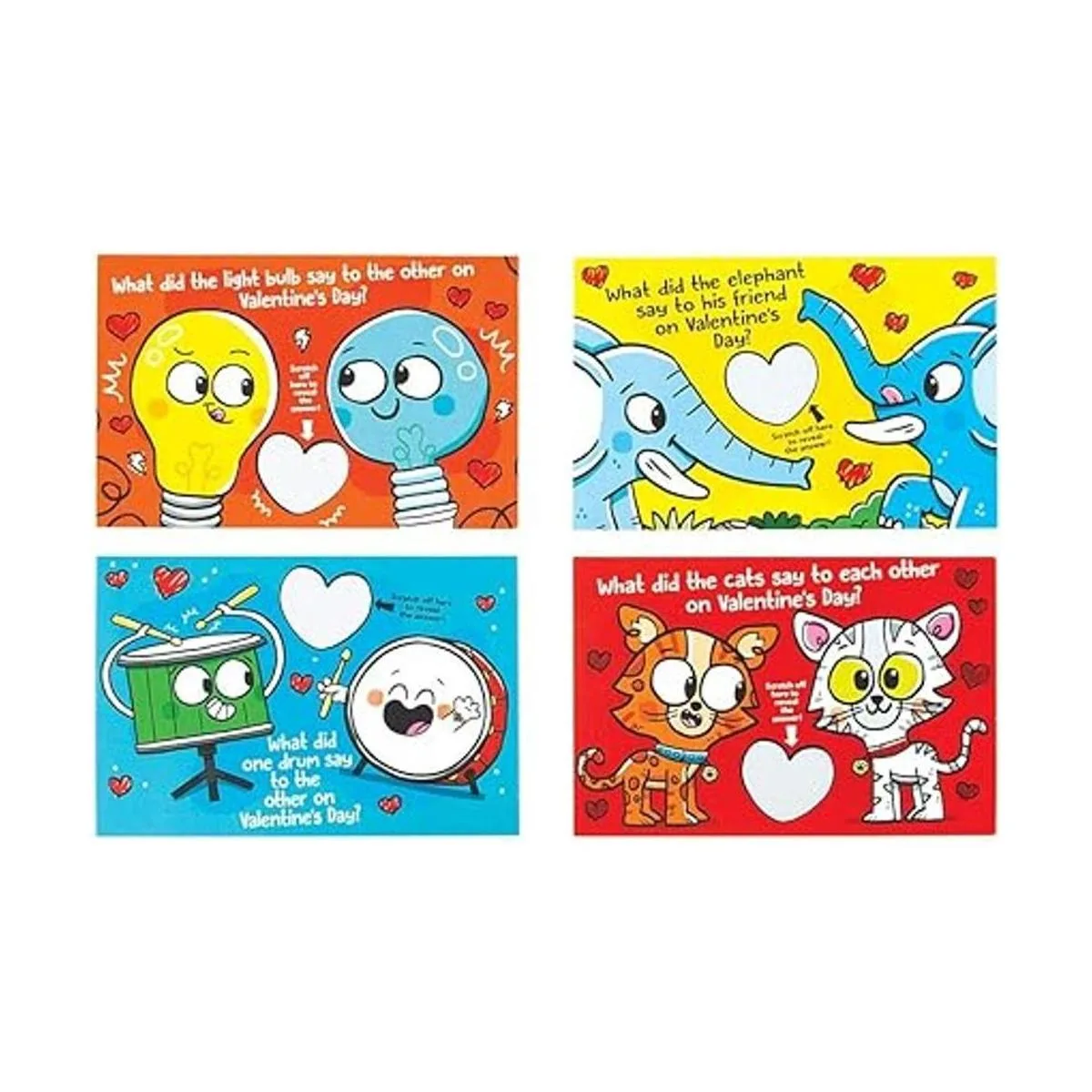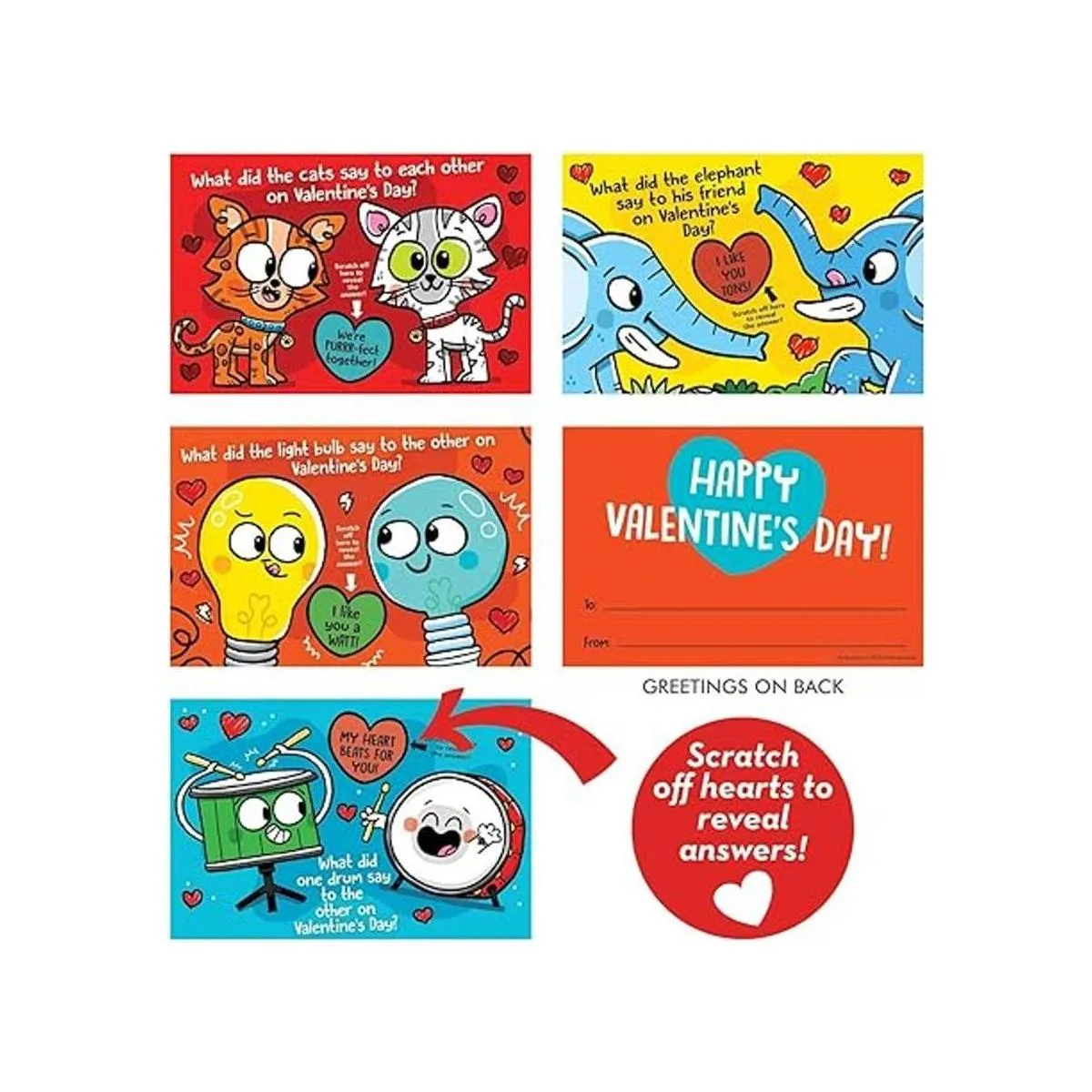 Y para hacer que las tarjetas sean extraordinariamente especiales, cada amigo tiene que leer un chiste silencioso y luego raspar el corazón para revelar la línea de remate.