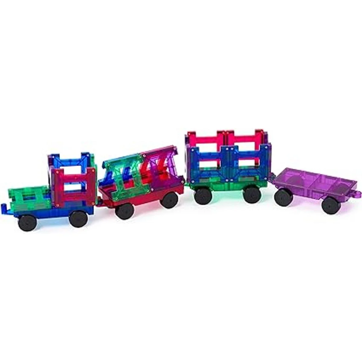 Playmags Juego de accesorios de 50 piezas, con imanes más fuertes, juguetes STEM para niños, azulejos magnéticos resistentes y Vivid Clear Color con 4 automóviles.